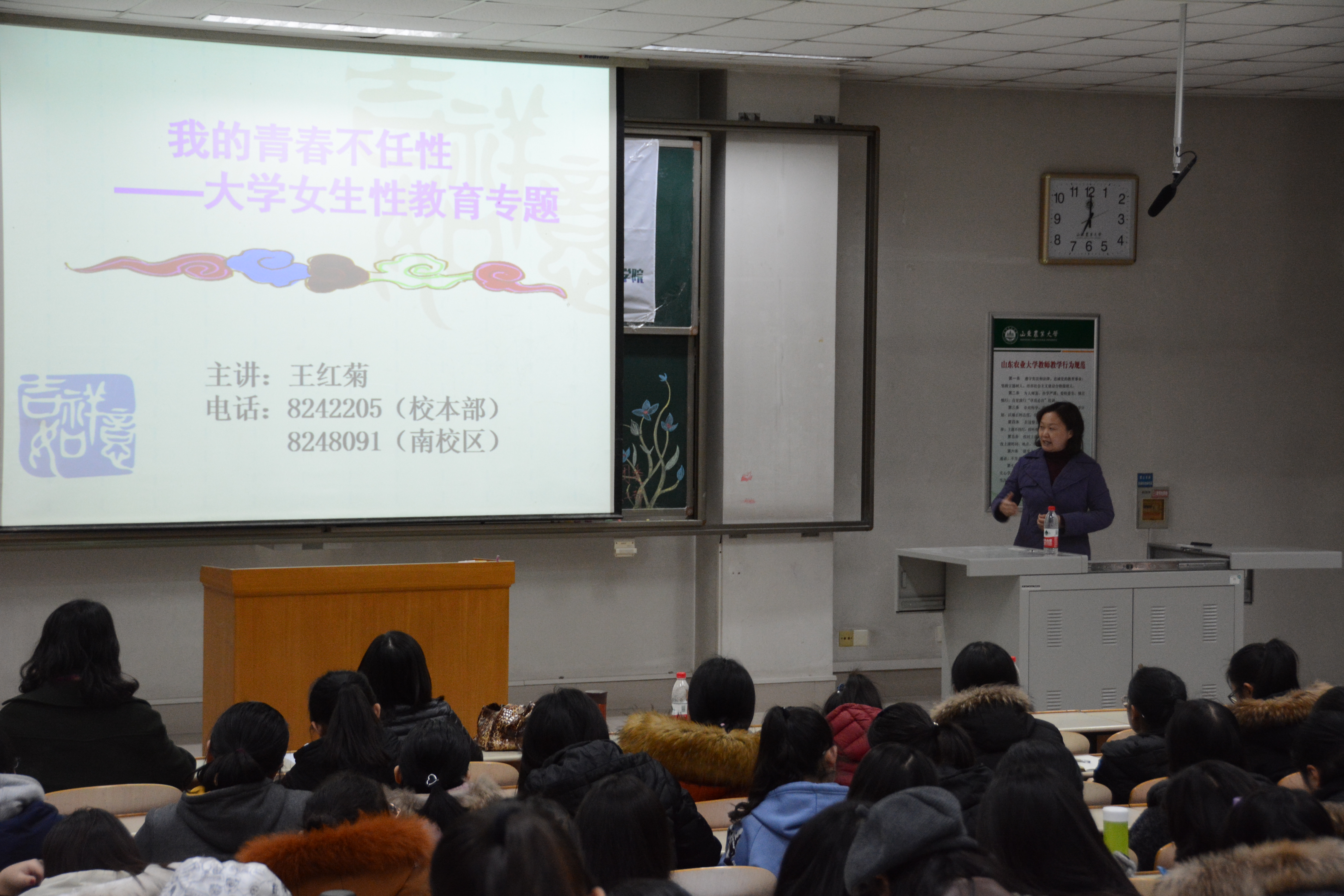 王红菊以“我的青春不任性”为题,通过丰富的案例向在场学生讲述了女大学生常见的、很重要的性心理专业知识。会议伊始,就“何为长大”这一问题与同学展开讨论,通过分享自身经历呼吁大家用良好的心态对待心理与生理各方面的变化,以积极的态度迎接自身的成长。紧接着,她对现阶段女大学生的心理特点进行剖析,她认为此阶段的女生易受外界影响并且自身缺乏理性的判断,极易上当受骗。她循循善诱,引导在场学子树立正确的交友理念,并劝诫在场学子不可一时冲动而盲目行动,造成不可挽回的伤痛。在大学恋爱方面,王红菊劝诫在场学子要谨慎恋爱,支持学子们找到承诺、依恋、激情并存的完美爱情,在享受爱情的同时应避免走向恋爱误区,把爱情视为全部。要学会在爱情中保持真诚和冷静,遇到情绪消极时要学会倾诉和自我拯救。会议最后,王红菊向大家分享了“关于恋爱的10条金玉良言”及关于今后女学子个人生理保护的建议,在场学子受益匪浅,现场气氛轻松活跃。