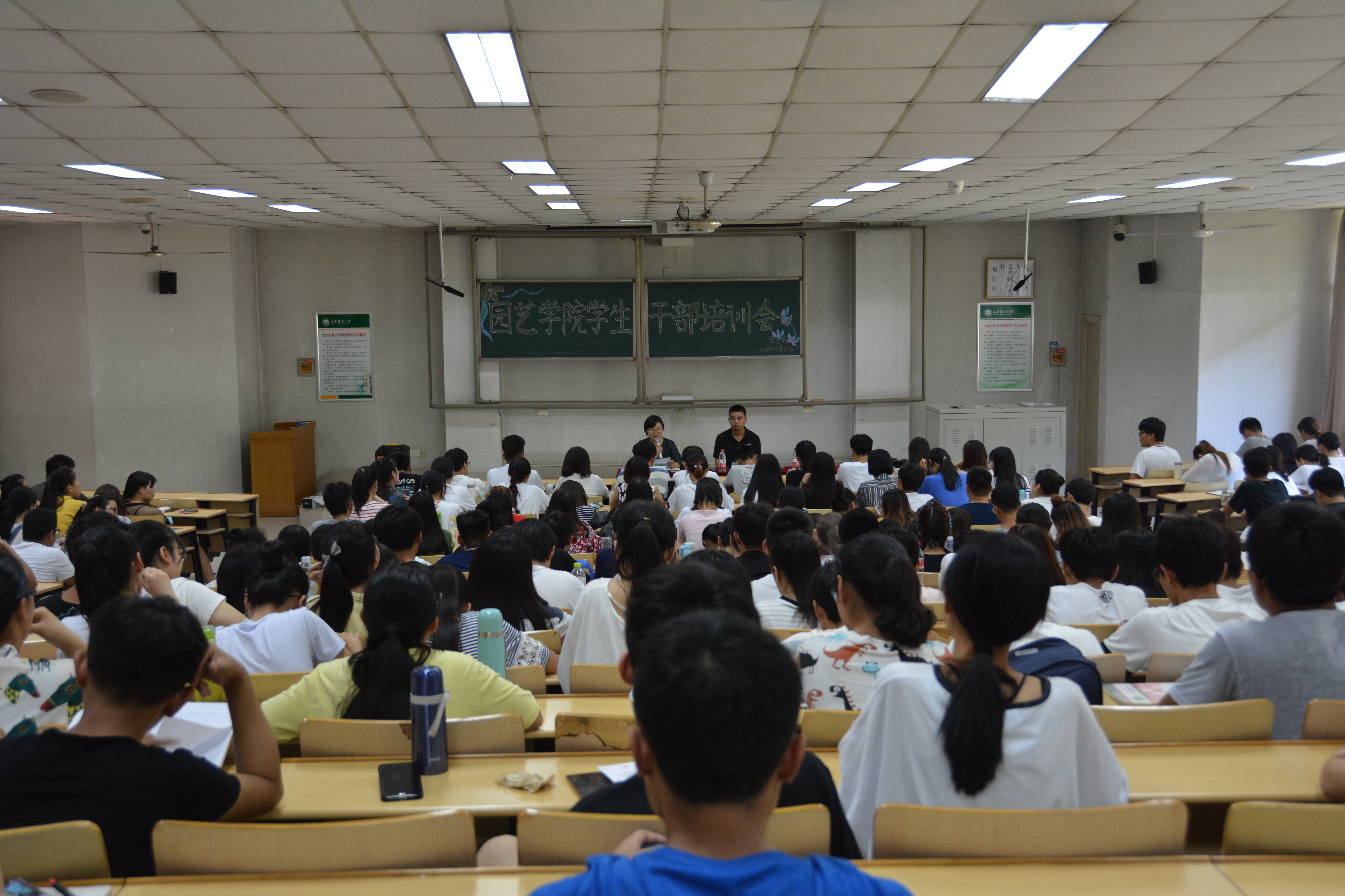 8月28日,园艺学院于南校区综合楼N101教室召开学生干部培训会。学院党委副书记张安涛,团委全体成员,各年级班团、社团和创业团队负责人、球队队长以及学生会全体成员共同参加了此次培训。