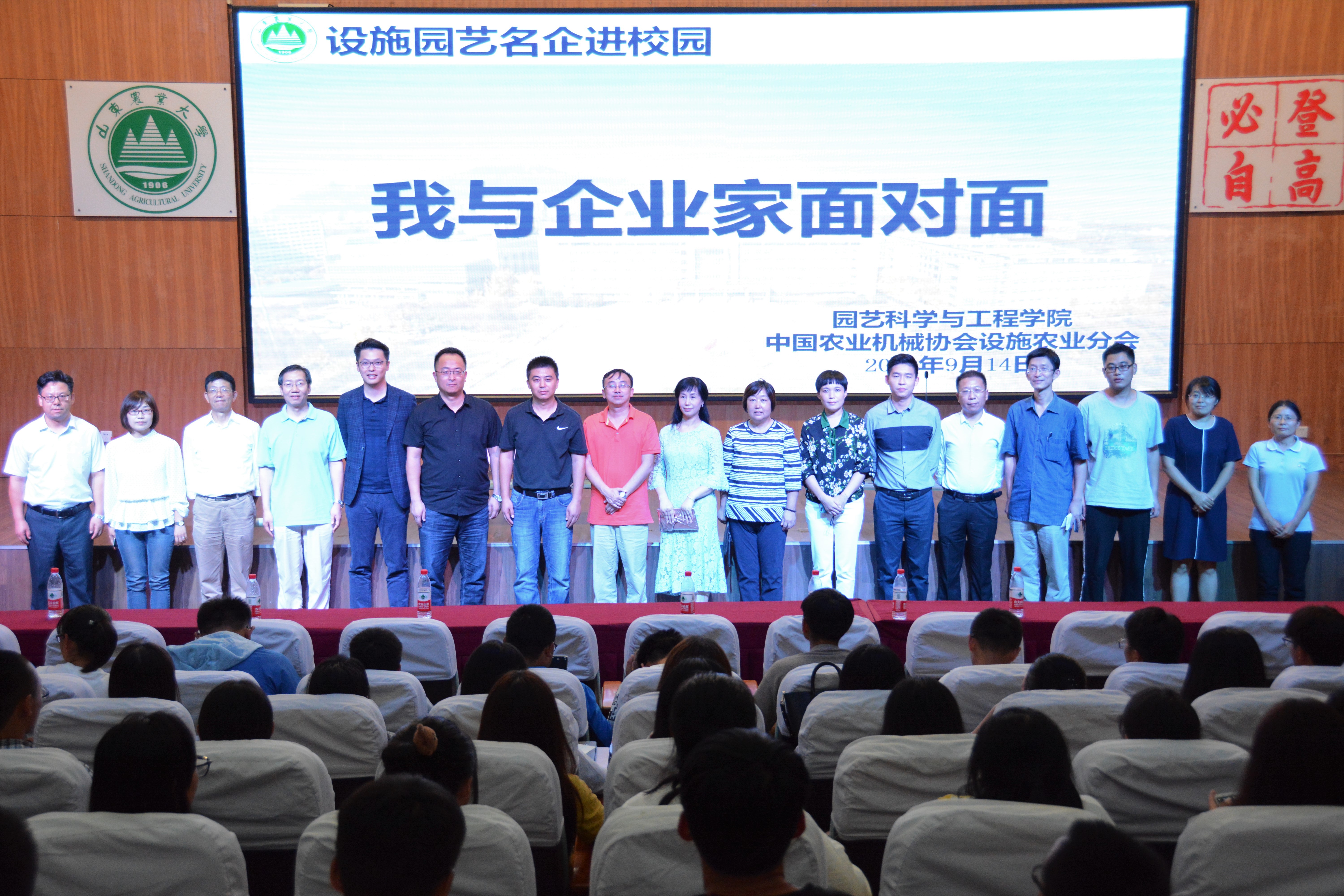 9月14日晚,设施园艺名企进校园之“我与企业家面对面”于南校区第一学术报告厅隆重举办。本次活动邀请中国农业机械协会设施农业分会刘毅秘书长和9位企业大咖来校与师生面对面交流,学院领导、设施专业老师以及2018级全体新生、高年级学生代表参加了交流会。