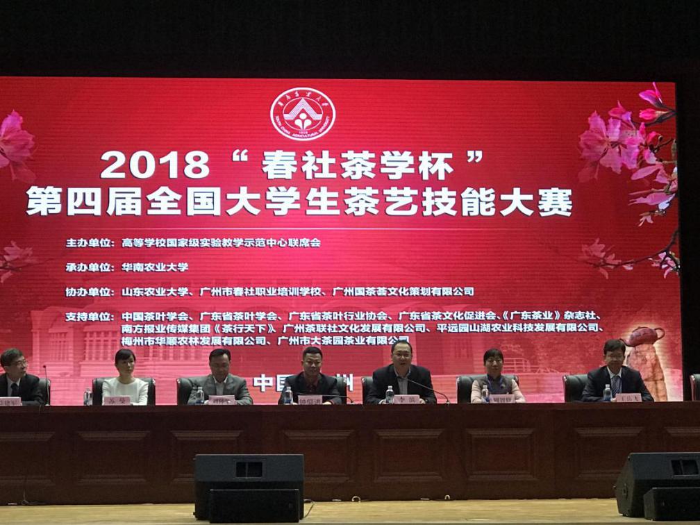11月22日至11月25日,由高等学校国家级实验教学示范中心联席会主办,华南农业大学承办,山东农业大学等协办的2018年“春社茶学杯”第四届全国大学生茶艺技能大赛在华南农业大学及广州国茶荟各考场举行。此次大赛以“弘扬传统文化、加强交流合作、培养创新人才”为主题,吸引了全国28所高校的337名师生参赛。