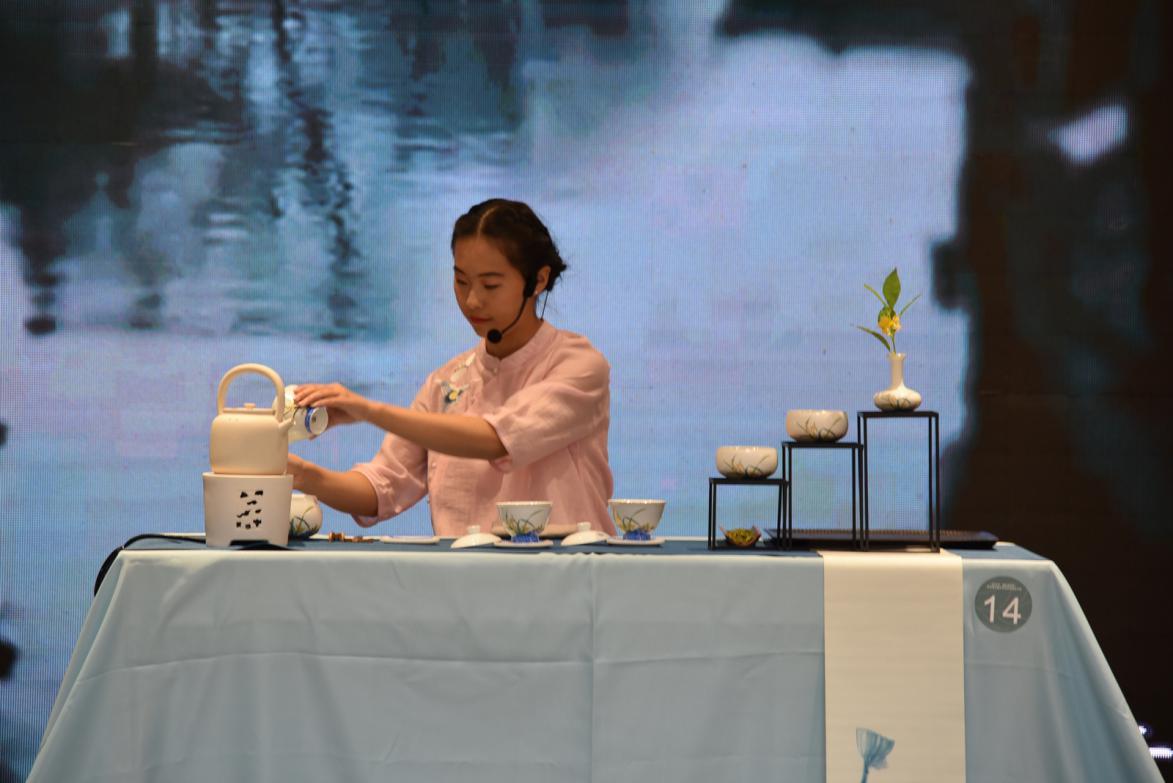 个人创新茶艺竞技中,张滢同学的《青果茶思》展现了常州古城中的江南名士第一巷—青果巷的文化底蕴和常州的吃茶习俗,将青果巷文化与茶之高洁品性相结合,借茶传播青果巷历史悠久的名士文化,表现其对当世的重大影响意义。王舒月同学的《北方有佳茗》节目通过“北茶”的自述,带领大家重温“南茶北引”的艰辛,以茶艺、舞蹈、解说相融合的方式体现“北茶”特有的品质特性以及北方茶人对茶叶栽培技术的不断探索和对茶的深厚情感。两位同学以其流畅唯美的表演和扎实的茶及茶文化知识考核成绩,最终获得三等奖。在个人品饮茶艺中,伊冉、张月、陈新颖同学以茶及茶文化知识考核成绩位居前列进入决赛,在实操比赛中,沉着冷静,娴熟流畅地为评委泡好一杯茶,并为评委介绍所泡茶品,以扎实的专业功底征服了评委,最终获得二等奖1个和三等奖4个。