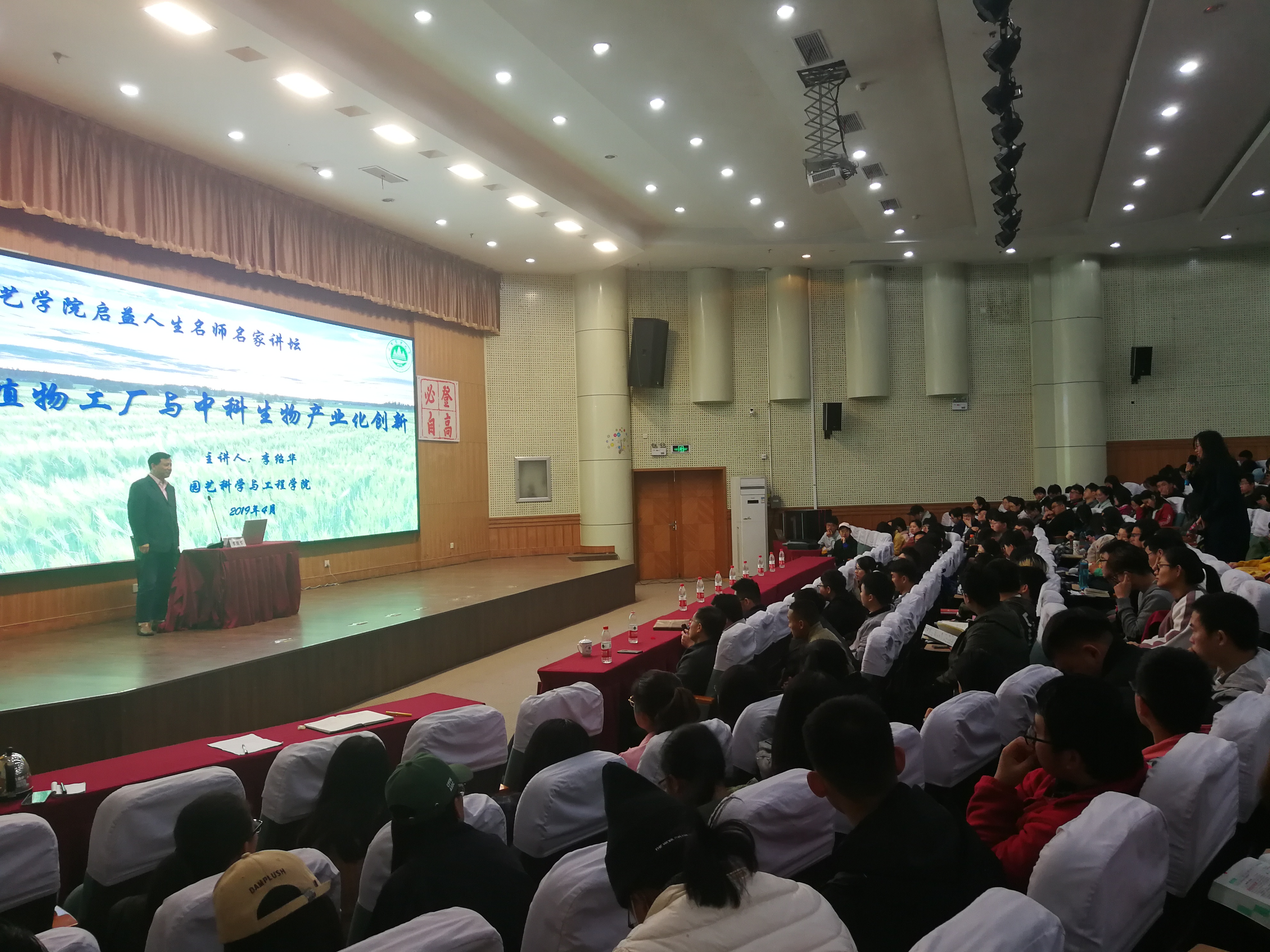4月27日,园艺学院启益人生名师名家讲坛于南校区第一学术报告厅热烈开讲。本次开讲嘉宾邀请中国科学院植物研究所研究员,中国科学院“百人计划”基金和教育部跨世纪人才计划基金获得者,中国园艺学会常务理事、中国植物学会理事李绍华为学院各年级同学就“植物工厂与中科生物产业化创新”就行交流。园艺学院院长郝玉金主持本次讲坛,学院学生工作全体成员、各年级同学参加共同参加本次活动。