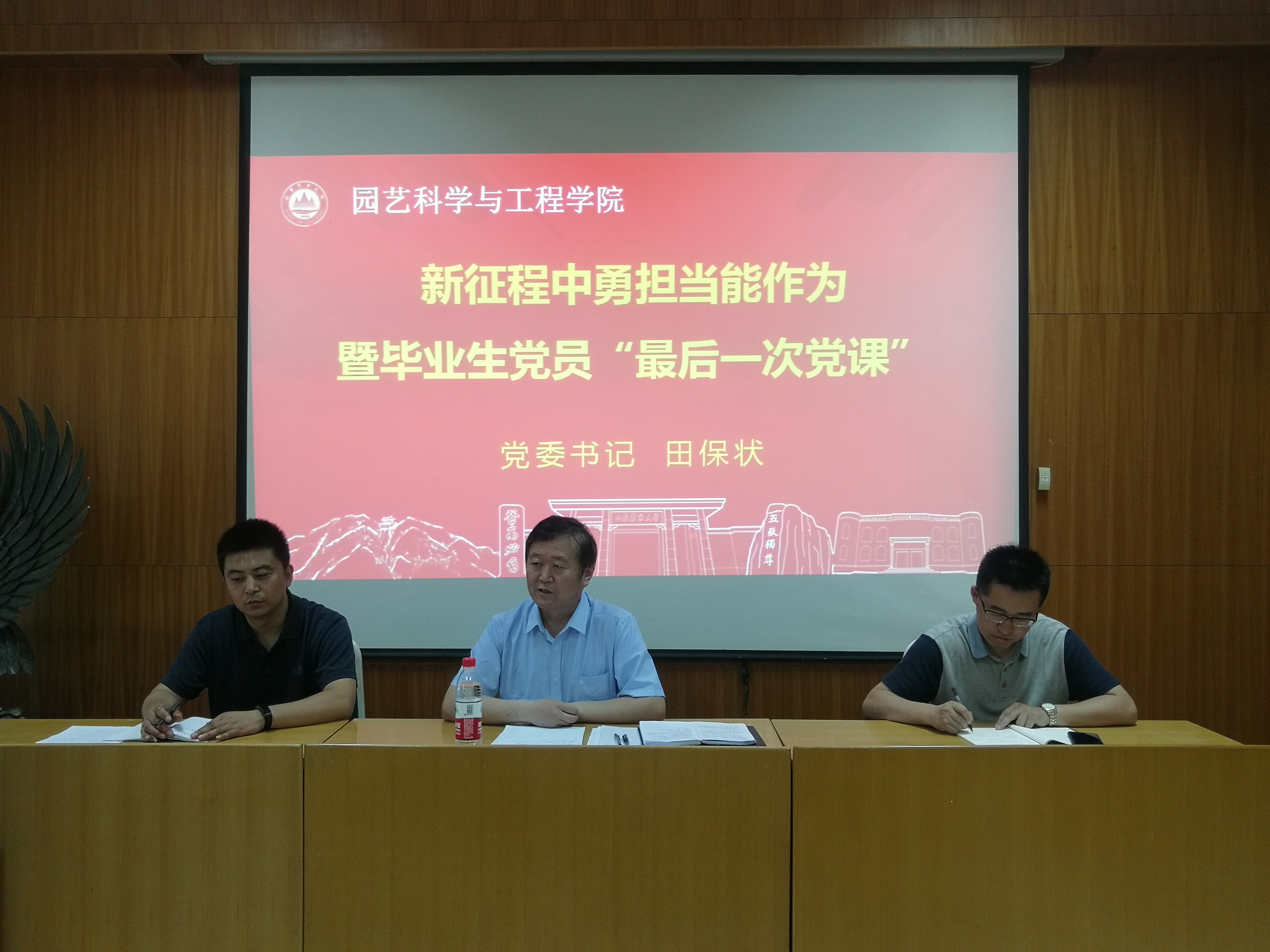 6月5日,园艺学院党委在10号楼112室举行毕业生党员“最后一次党课”,由园艺学院党委书记田保状授课。党课由学院党委副书记张安涛主持,本科生、研究生支部书记和2019届全体本科生、研究生毕业生党员共同参加了党课。