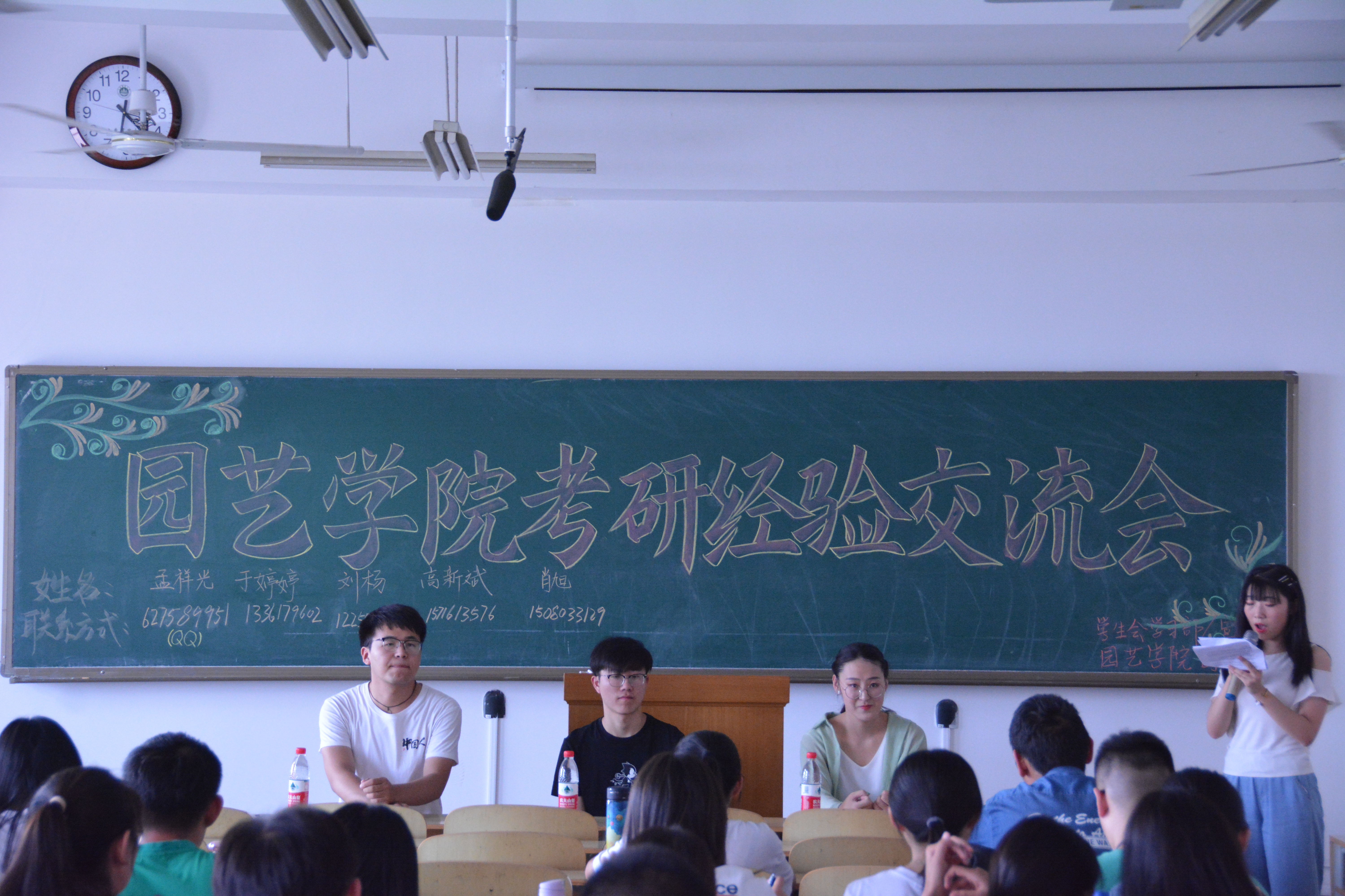 6月11日,园艺学院于南校区综合楼s611教室成功举办考研经验交流会。本次交流会特邀考取本校研究生的2019届优秀毕业生孟祥光、于婷婷、高新斌分享考研经验,60余名有意向留校考研的2016级学子前来聆听。