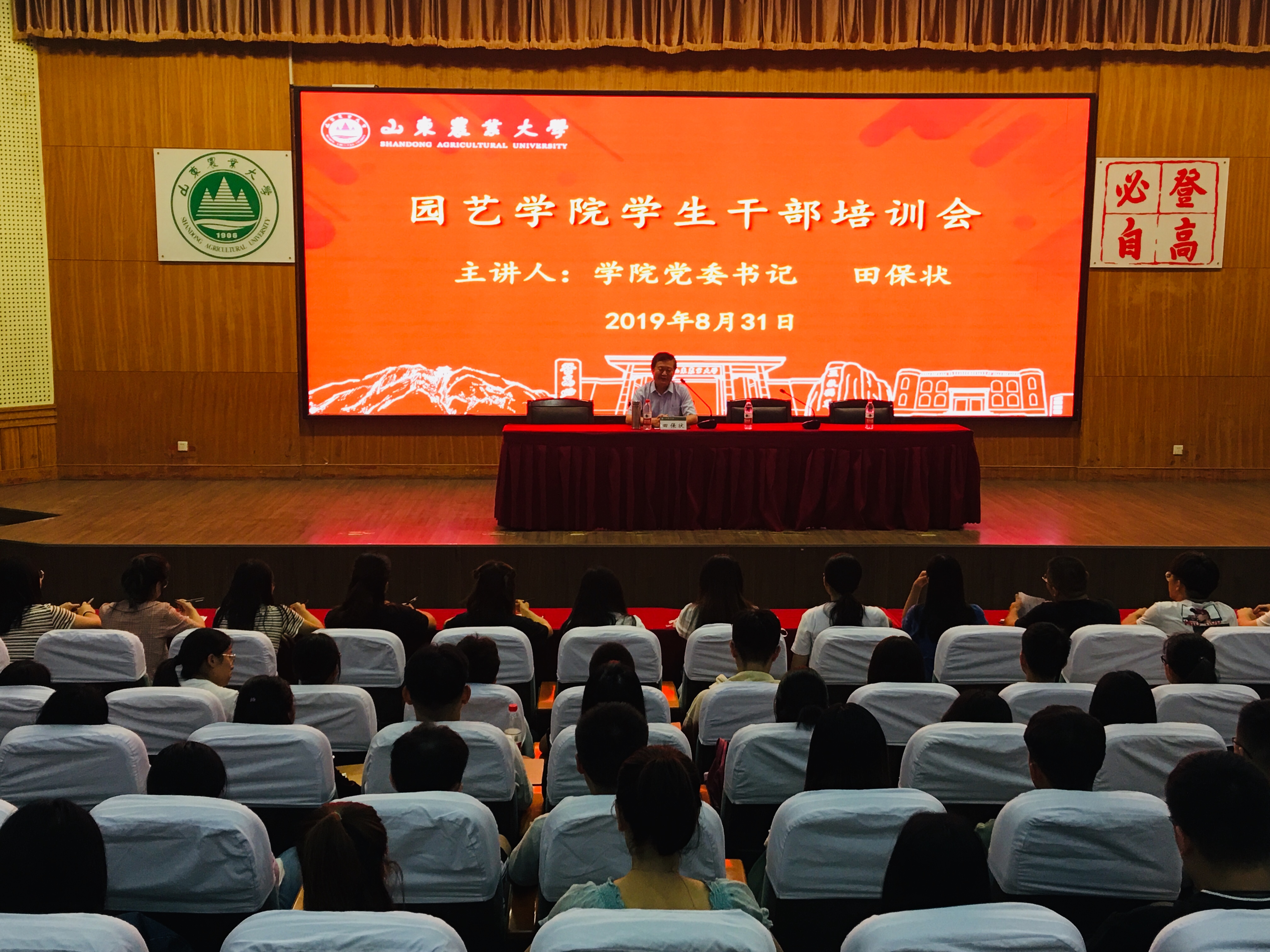 8月31日,园艺学院于南校区第一学术报告厅成功举办学生干部培训会。园艺学院党委书记田保状、党委副书记张安涛、团委辅导员安莲、杜鹤以及学院全体学生干部共同出席本次会议。