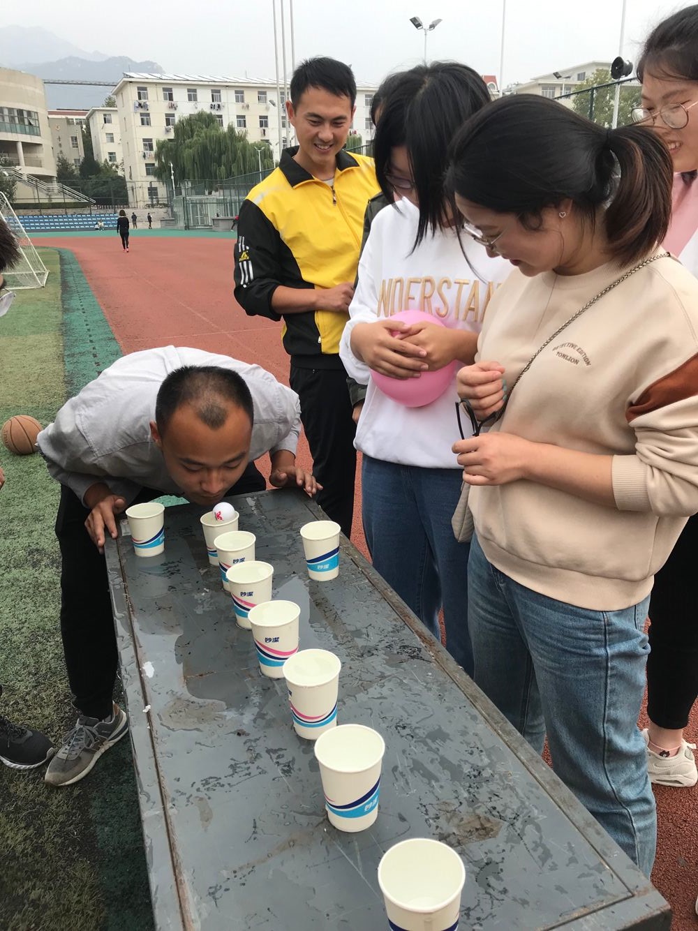 此次运动会共分为趣味接力赛、气球运送纸杯、五人六足跑、吹乒乓球、足球保龄球、就不听指挥、摸石过河和乒乓满地飞8个项目,并创新性的采用“抽签+自主选择”的方式保证了比赛的公平公正。赛前,研究生们斗志昂扬,争分夺秒地练习比赛项目,认真进行热身准备。9点比赛哨声准时响起,就不听指挥、五人六足跑、摸石过河、乒乓满地飞深受欢迎,以孙庆国为代表的第13参赛小组在五人六足跑中齐心协力,默契配合,最终以超出第二名10秒的成绩获得第一名;足球保龄球、吹乒乓球、趣味接力赛、气球运送纸杯等项目亦相当激烈,以潘连辉为代表的第15参赛小组稳扎稳打,巧妙借力,夺得趣味接力赛和吹乒乓球的双冠军。各组队员同心协力,互相鼓励,团队精神在欢声笑中逐渐凝聚。