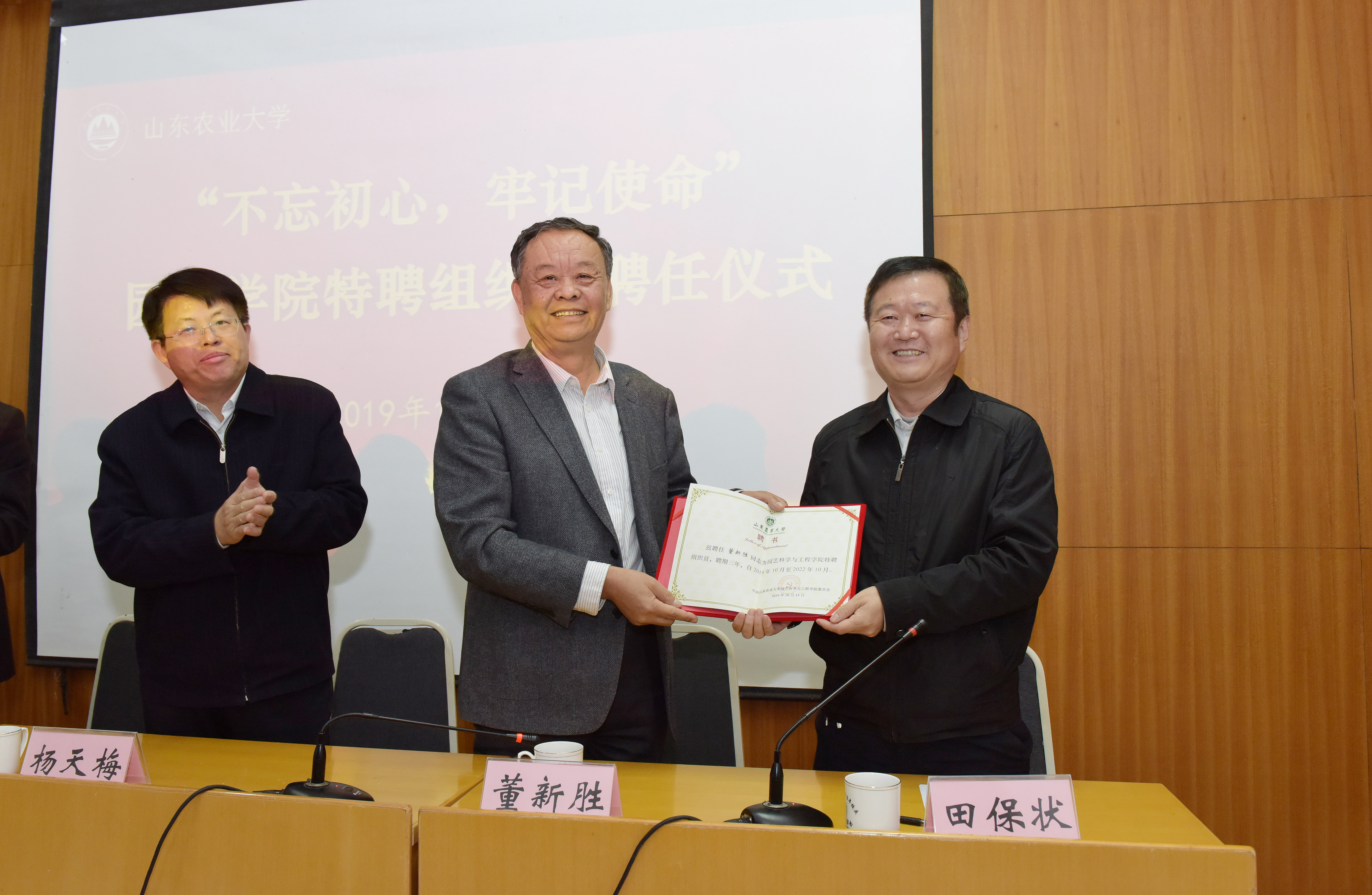 董新胜受聘担任园艺学院党委特聘组织员,负责指导学院党建思想政治工作。董新胜在聘任仪式上表示,作为一名老党员、老干部、老教育工作者,职务变了,义务没变;岗位变了,站位没变;角色变了,本色没变,有责任、有义务、有愿望继续为党的教育事业发挥“余热”,增添“正能量”;将把特聘组织员作为一项光荣任务和沉甸甸的担子,为学院抓党建思想政治工作,促“一流”创建和高质量发展持续“发光”“发热”。