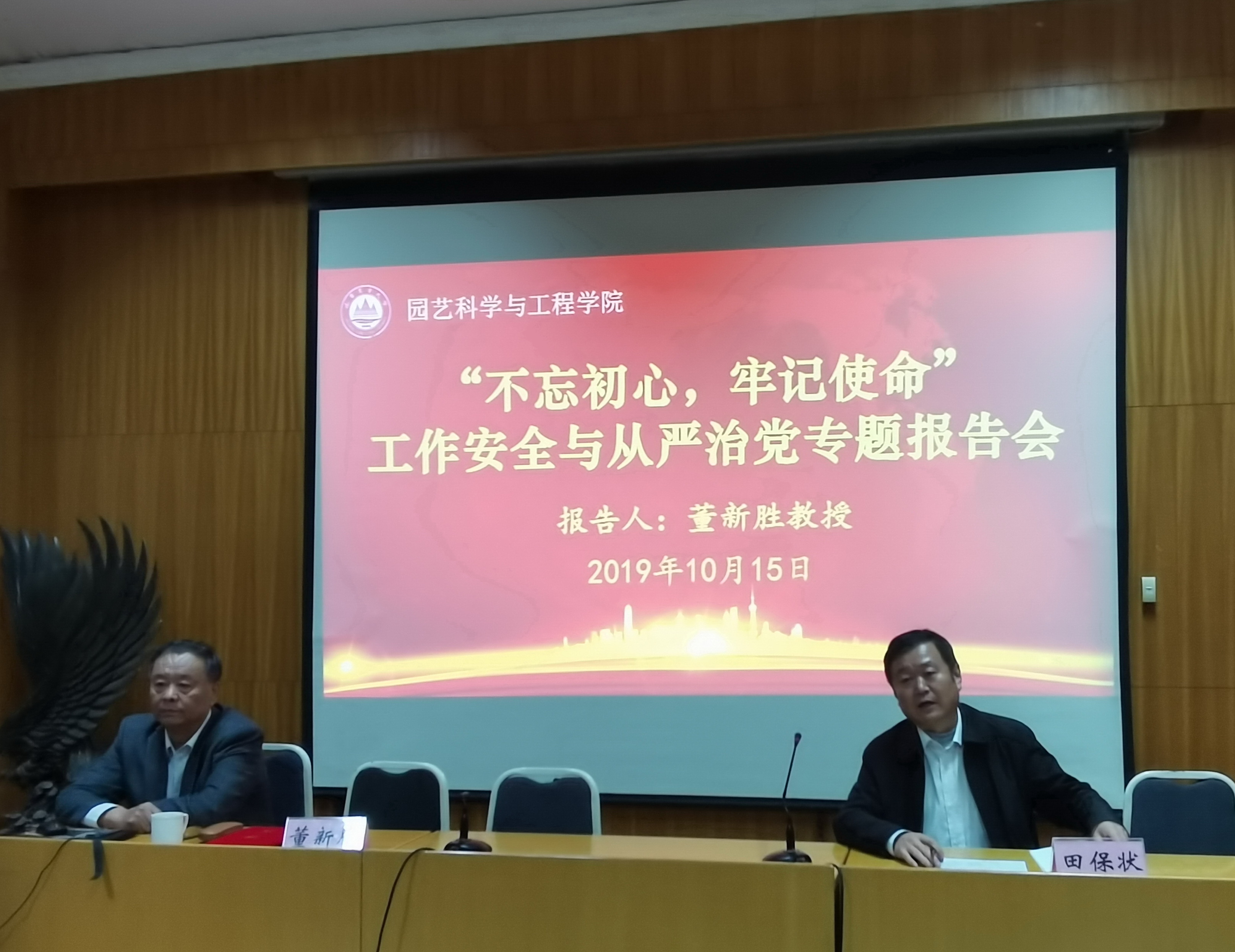 10月15日下午,园艺学院党委在北校区10号楼116教室,举行特聘组织员聘任仪式暨“不忘初心、牢记使命”主题教育专题党课。校党委副书记杨天梅,原校党委副书记、纪委书记董新胜教授,校党委组织部部长卢国强与园艺学院全体教工党员一起参加活动。