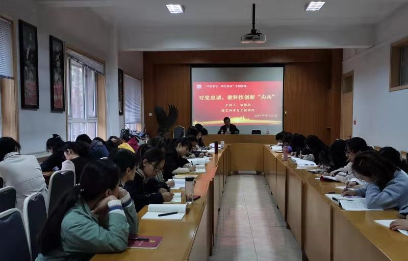2019年10月30日,“对党忠诚,做科技创新“尖兵””园艺学院研究生专题党课在园艺楼112会议室进行。园艺学院党委书记田保状为研究生支部党员上党课,研究生支部党员参加。