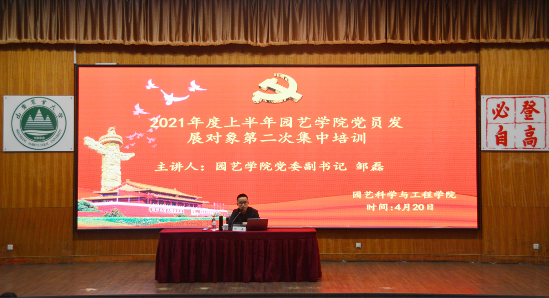4月20日,园艺学院对2021年上半年党员发展对象进行第二次集中培训。培训会由学院党委副书记邹磊主讲,学院全体学生党员、入党积极分子与2021年上半年发展对象参加培训。