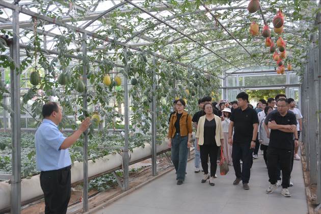 11日清早,师生们准时到达乘车地点,热情饱满地奔赴本次实习第一站、素有“中国蔬菜之乡”美誉的寿光市,参观了第二十五届中国(寿光)国际蔬菜科技博览会,感受现代科技赋能下的蔬菜魅力;随后,大家来到寒亭区,走进全国最大精品西甜瓜培育综合体—郭牌农业科技有限公司,参观了该公司的四季立式种植技术示范园,体味“郭牌”带来的甜蜜、以及其背后所秉持的“匠人精神”;在潍坊自然邦生态农业科技有限公司,公司创始人、“大国农匠”梁其安先生,结合“黄金籽”西红柿品牌的创立和带领乡亲们增收致富的亲身经历,向大家诠释了习近平总书记“新质生产力”的强大动能,使师生们接受了一场别开生面的思政主题教育;在昌乐西瓜科技示范园,我校优秀校友、昌乐西瓜研究所赵平所长向大家详细介绍了该县西瓜的悠久历史、以及在我国西瓜产业中的突出地位,并寄语大家“珍惜在校之美好时光,不负韶华、勇攀高峰”。