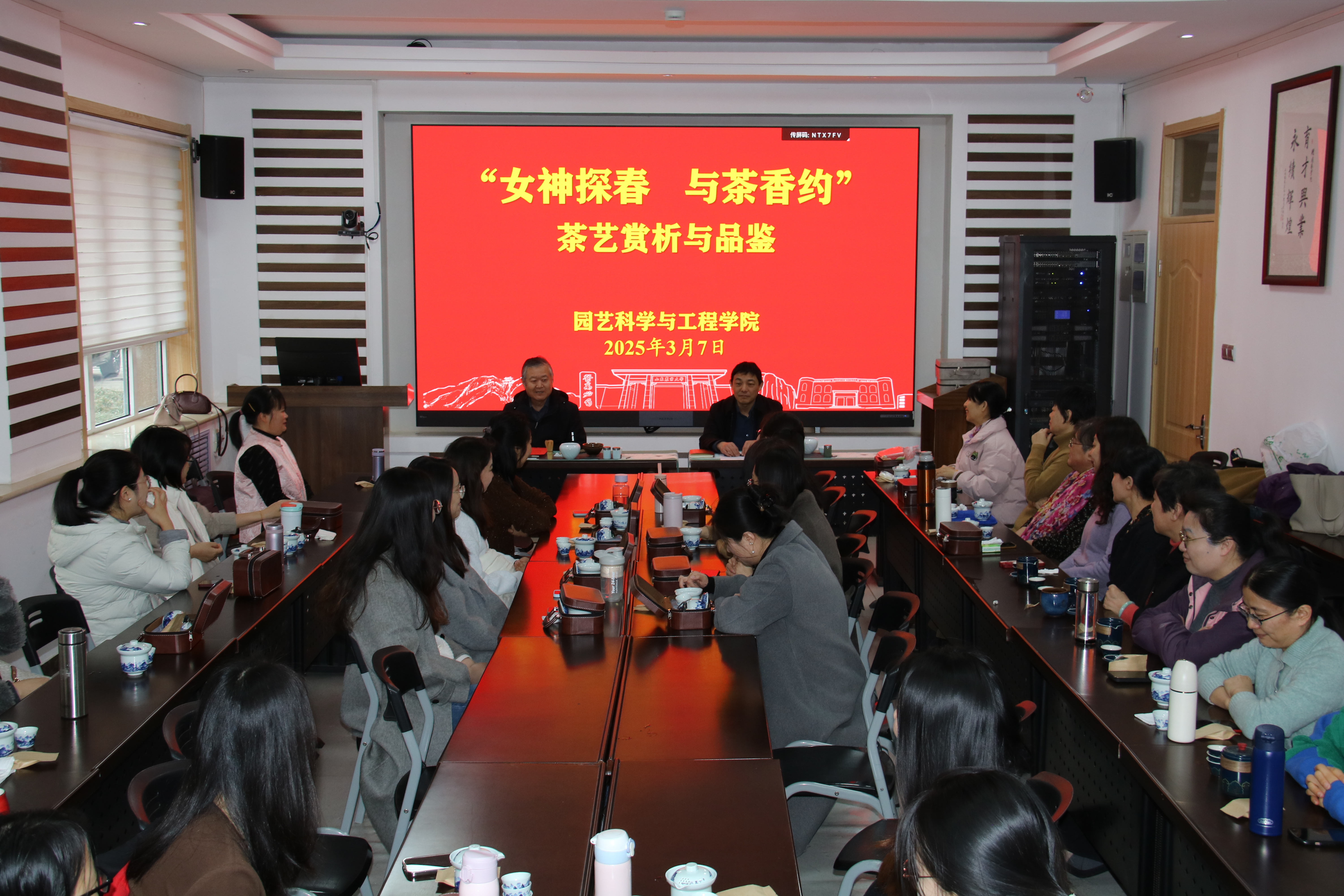 在学校决战“十四五”、决胜“冲一流”的关键之年,为庆祝第115个国际“三八”妇女节,弘扬中国传统茶文化,提升老师们对茶艺的欣赏能力和品鉴水平,园艺学院于3月7日在伯善楼112会议室举办“女神探春,与茶‘香’约”茶艺赏析与品鉴活动。学院工会主席王庆材主持活动,院党委书记田保状出席活动并为女教工送上节日祝福,近40名教职工代表参加本次活动。