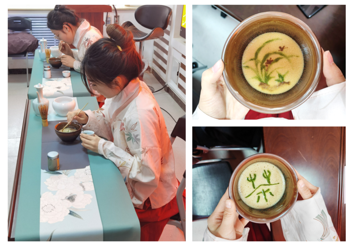 茶艺鉴赏环节,茶学专业两名学生为老师们演示了仿宋点茶制作流程,其手作兰花造型与“茶”字隽秀雅趣,引领大家传承茶文化、领悟生活中的宁静与诗意。
