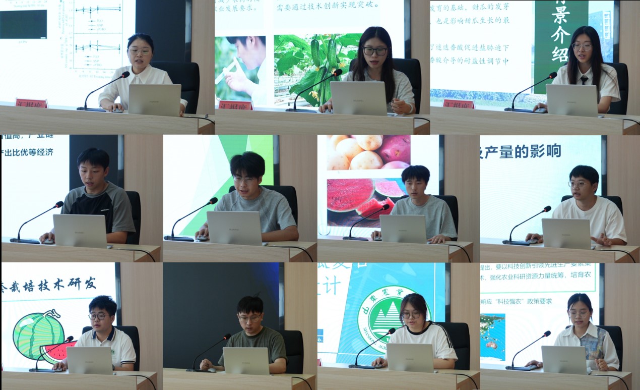 活动伊始,史庆华副院长和彭涛副书记分别代表学院和彭集街道致辞,回顾了双方长期以来在科技创新、人才培养和项目申报等方面密切合作取得的丰硕成果,并期待未来能够建立更全面更紧密更深入的合作关系。随后,11位来自园艺学院、植保学院、食科学院、信息学院的2025届本、硕、博毕业生依次登台,围绕瓜类产业和产区高质量发展的需求,从新品种选育、病虫害绿色防控、智慧化栽培、采后废弃物利用、产品保鲜加工等方面进行了汇报交流,将理论突破与实践创新深度融合,把论文写在产区大地上。活动期间,产业组专家们亦与当地种植户代表进行了现场交流,针对生产中遇到技术瓶颈和市场困惑,精准把脉、现场“开方”,提出了切实可行的技术优化方案和发展建议,将“科技及时雨”精准洒向田间地头,有效打通了农业科技服务“最后一公里”。