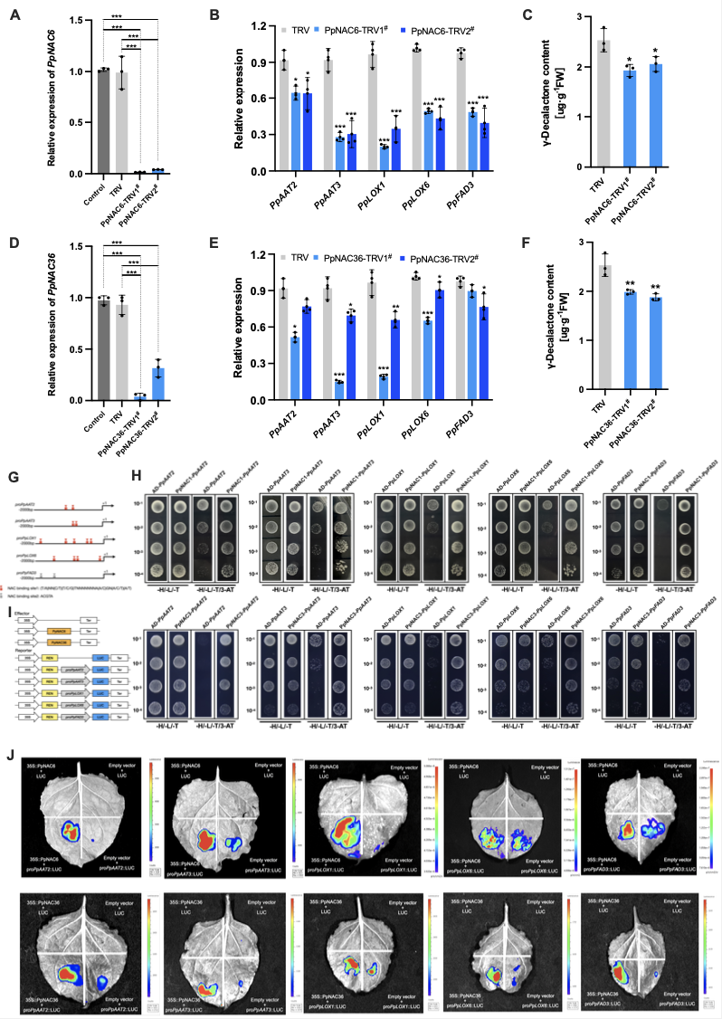 图3 PpNAC6和PpNAC36在桃果实γ-癸内酯生物合成中的功能研究