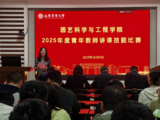 2025年10月9日上午,园艺学院以“锤炼教学技能,提升育人质效”为核心,举办青年教师讲课比赛。为确保比赛公平公正、专业权威,学院邀请教务处副处长冯竟竟教授、林学院副院长李永峰教授、食品科学与工程学院副院长李锋教授、学院党委书记田保状老师、副院长史庆华教授、教授委员会主任姚玉新教授担任评委。讲课比赛由副院长李媛媛教授主持。评委团从教学设计、教学内容、教学方法、语言表达、课堂互动等多维度对选手表现进行综合评审,既肯定亮点,也提出针对性改进建议,真正实现“以赛促学、以评促改”,为青年教师提升教学水平、服务学科发展指明方向。