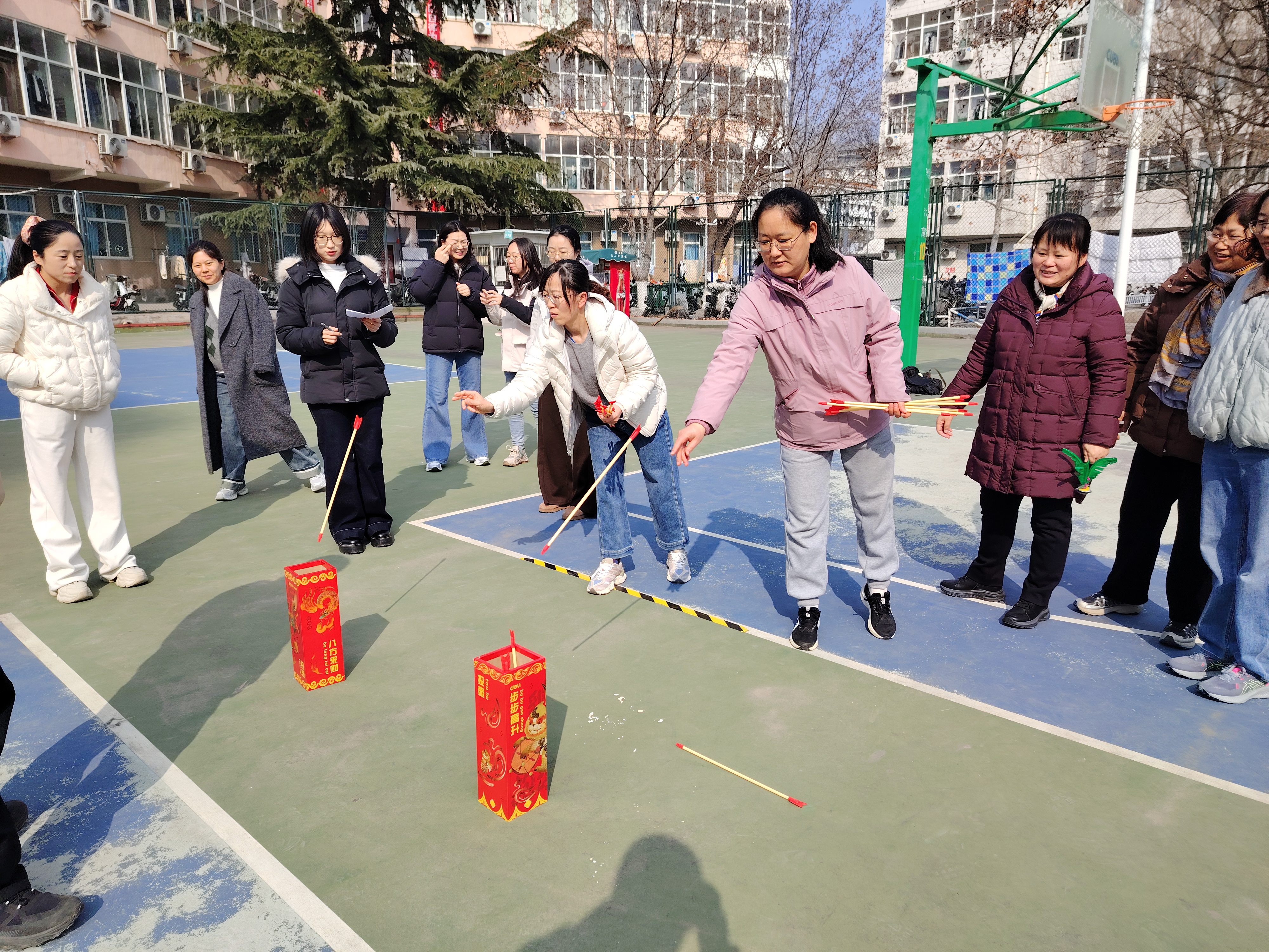 学院党委书记田保状致辞并送上美好的祝福,向辛勤耕耘在教学、科研、管理、服务一线的女教职工致以节日的问候和崇高的敬意!学院党委副书记、工会主席王庆材主持。本次趣味活动精心设置了投壶、沙包掷准、1 分钟跳绳、1 分钟踢毽子四个兼具趣味性与参与性的项目,既考验技巧又充满欢乐,让女教工们在轻松竞技中放松身心。投壶现场,大家屏气凝神、瞄准投掷,箭羽入壶的瞬间总能引来阵阵喝彩;沙包掷准区域,选手们调整姿势、精准发力,朝着目标稳步冲刺;跳绳与踢毽子项目中,女教工们身手矫健、节奏明快,绳子翻飞、毽子跳跃,展现出十足的活力与风采。赛场上,选手们全力以赴、奋勇争先,赛场下,队友们加油鼓劲、互帮互助,整个活动过程充满了欢声笑语,洋溢着团结奋进、温馨和谐的浓厚氛围。