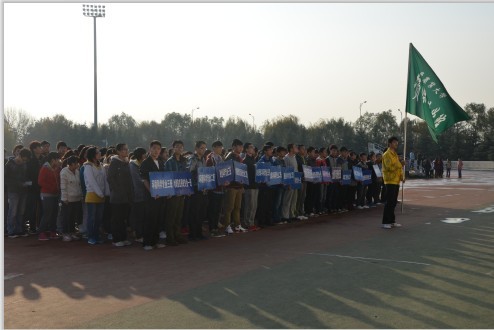 10日上午八时,运动会开幕式在热烈欢快的音乐中隆重举行。院长赵庚星、党委副书记杨永青、团委书记刘敏、辅导员康跃等老师出席开幕式,并由赵庚星院长致开幕词。此次运动会共有36项比赛,其中,既有传统的田赛径赛项目,也有定点投篮、足球射门、跳大绳等趣味项目。同时,为培养学生的团队协作精神,增加趣味性,学院精心准备,增加60米四人抗洪搬沙包赛跑、60米三人四足跑等新颖的比赛项目。