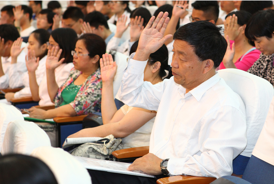参会代表认真听取于林同志做报告 参会代表举手表决