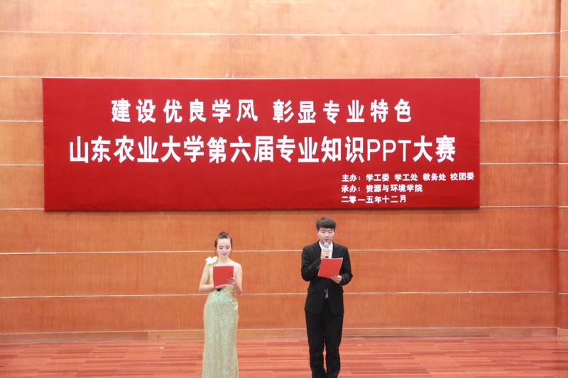 12月24日下午,由学工委、学工处、教务处、校团委主办,资源与环境学院承办的山东农业大学第六届专业知识PPT大赛在北校区文理大楼第一学术报告厅成功举办。学校各部门、各学院的领导和老师共同出席本次大赛,与各学院学生代表共同领略了这次专业文化盛宴。