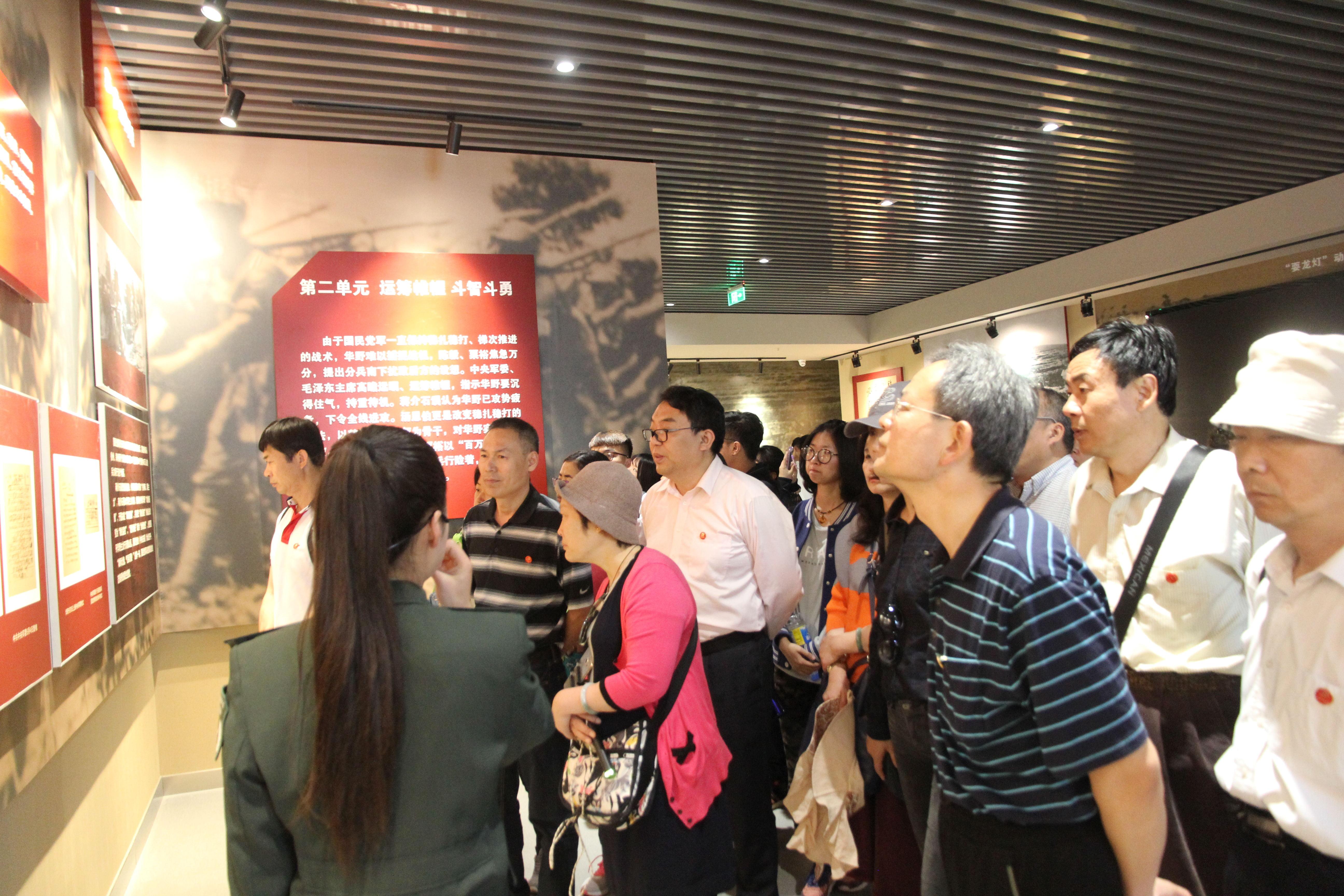 在孟良崮战役纪念馆内展出的历史图片、文献史料、影像视频,让大家回到解放战争波澜壮阔的历史图景中,孟良崮战役演示沙盘显现出华东野战军们“百万军中取上将首级”的英雄气概和高超的战略眼光;一把土枪,一双草鞋,一幕幕母送子、妻送郎、妹妹送哥上战场的感人场景让大家真切地感受到解放战争中伟大的群众力量;沂蒙六姐妹主动挑起村里拥军支前重担,发动全村男女老幼,为部队当向导、送弹药、送粮草、烙煎饼、洗军衣、做军鞋、护理伤病员的感人事迹让师生党员看到了这面红色旗帜的猎猎风采。英烈碑前,全体人员举起右拳,面对党旗,重温入党誓词,表达了为党的事业奋斗终身的决心。