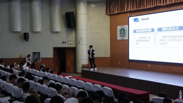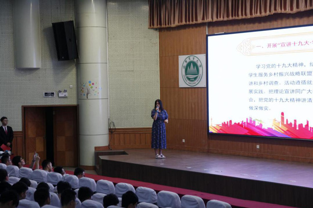 会议第二部分,社团管理部部长方雯同学就2018年暑期实践活动进行具体部署,介绍了“宣讲十九大·学子乡村行”、“创业促进计划”、“千乡万村”环保科普专项行动、“调研山东——助力新旧动能转换”等多项主题的实践活动,鼓励同学们响应十九大的号召,结合实际,贴合专业,科学选题,精细准备。