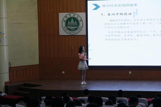随后,五位具有丰富实践经验优秀学子,借助PPT演示、视频播放等形式真实有趣、图文并茂地将他们的实践过程点滴呈现出来,分享了自己独到的调研经验和感悟。