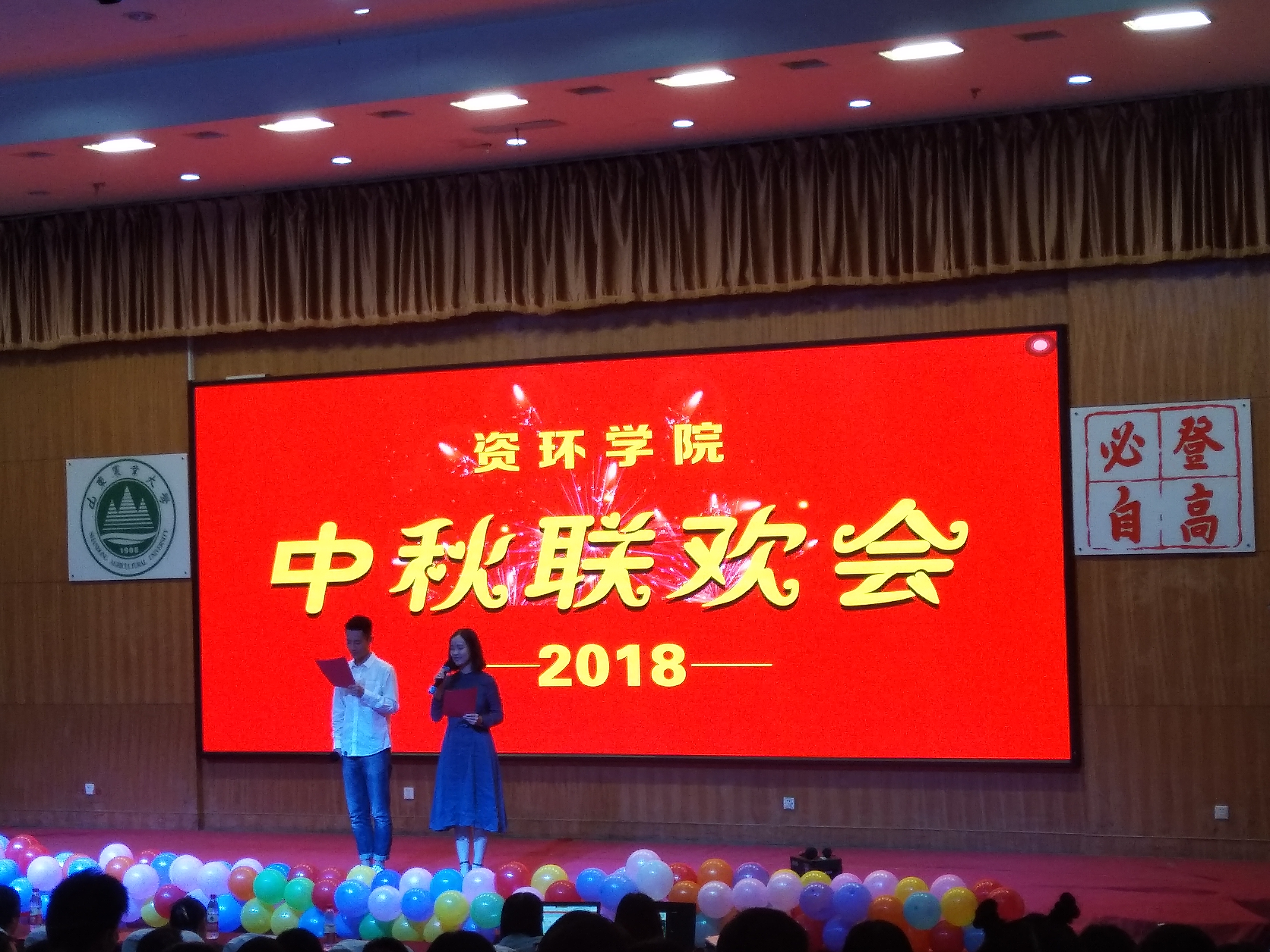 9月24日,资环学院于南校区第一学术报告厅举办“中秋联欢会”。学院领导、教师、辅导员出席晚会,2018级留校学生、学院学生干部及文艺骨干参加了晚会。