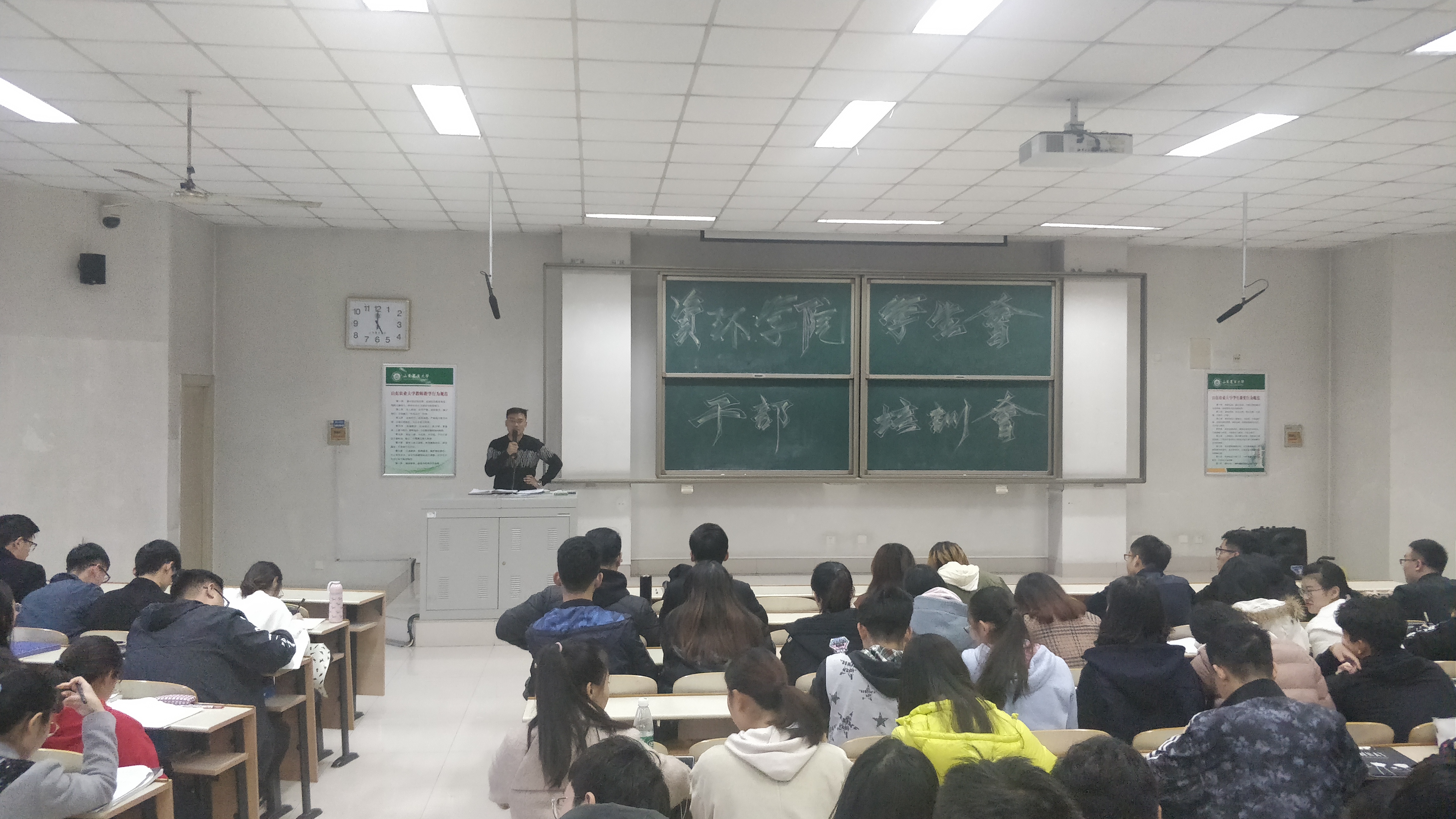 11月13日,资环学院学生会“新时代综合能力提升”全体学生干部培训会(第1期)在南校区综合楼N504教室进行。学院2017级辅导员王艳廷出席会议,院学生会全体学生干部及干事参加会议。