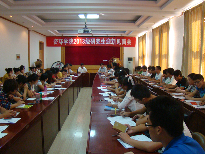 9月6日下午,资环学院2013级研究生新生迎新见面会在资环学院3号楼320会议室举行。学院党政领导、学科导师组长及学科秘书老师出席会议,学院2013级全体研究生参加会议。