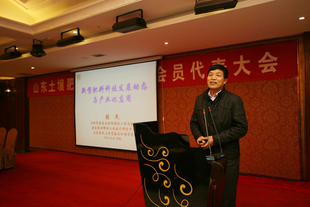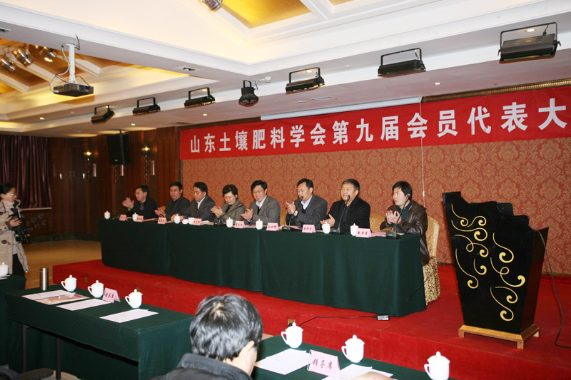 2013年12月21日,山东土壤肥料学会第九届会员代表大会在肥城召开。来自山东省土壤肥料总站及各地、市、县土肥站,山东省农业科学院及各地、市农科所、山东农业大学、青岛农业大学、山东师范大学的专家教授,山东省水利厅和部分肥料企业的会员代表共140人出席了会议。