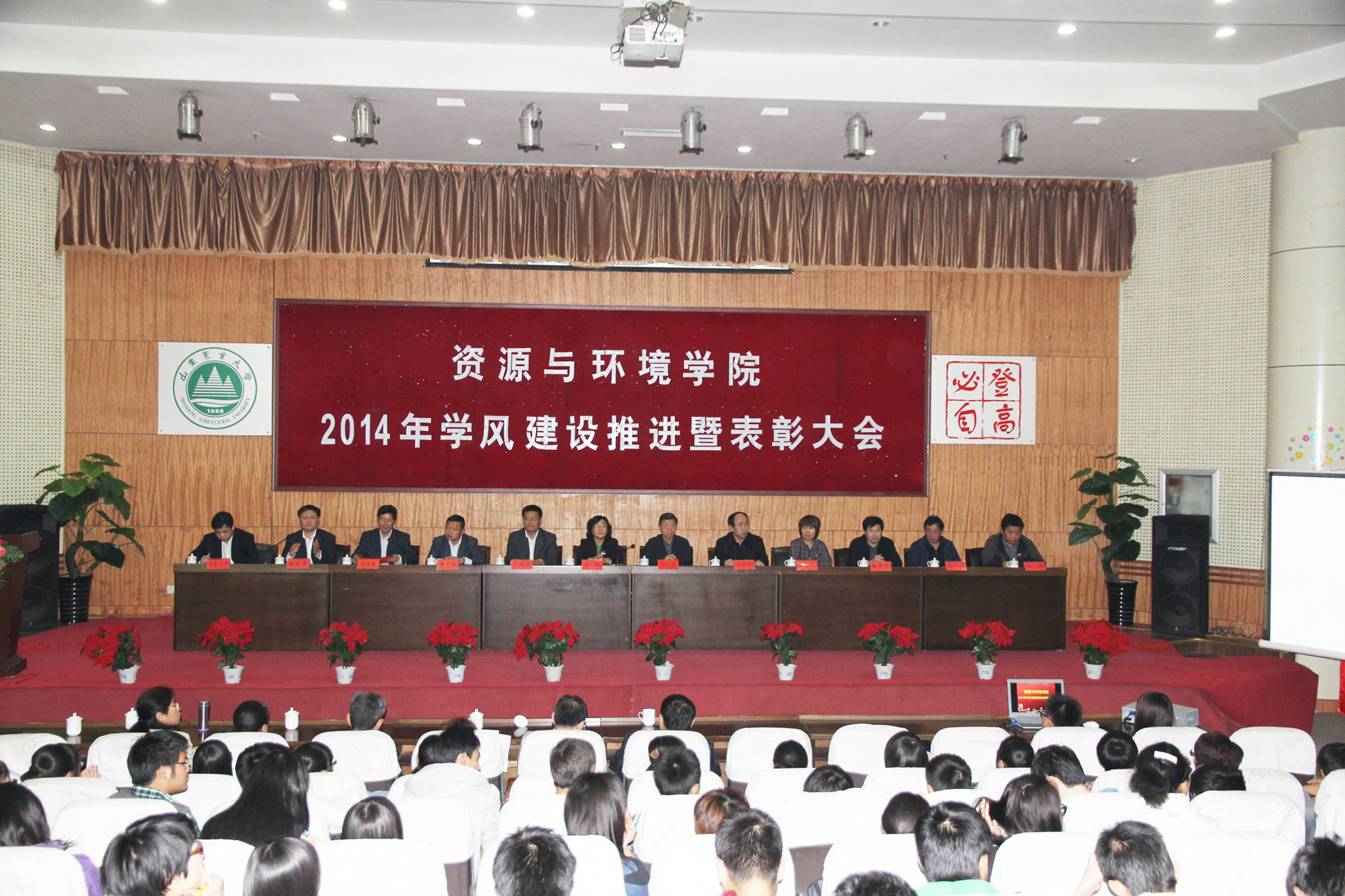 4月17日,为表彰2013年度取得优异成绩的先进个人,部署今年的学风建设工作,资源与环境学院2014年学风建设推进暨表彰大会在南校区学术报告厅隆重举行。副校长朱莉,校关工委常务副主任张立德,学工委、研工委、南校区、教务处等部门以及学院领导出席会议。大会由学院党委副书记杨永青主持。