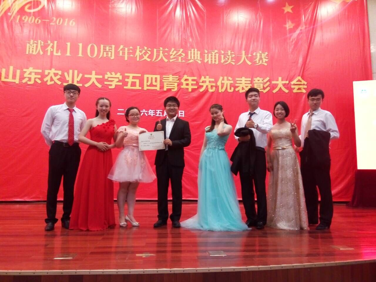 5月4日下午,山东农业大学北校区文理大楼灯光璀璨,激情澎湃。“献礼110周年校庆经典诵读大赛暨山东农业大学五四青年先优表彰大会”隆重召开。资环学院上下齐心,团结奋进,以9.692高分排名第三,斩获本次比赛二等奖的桂冠。