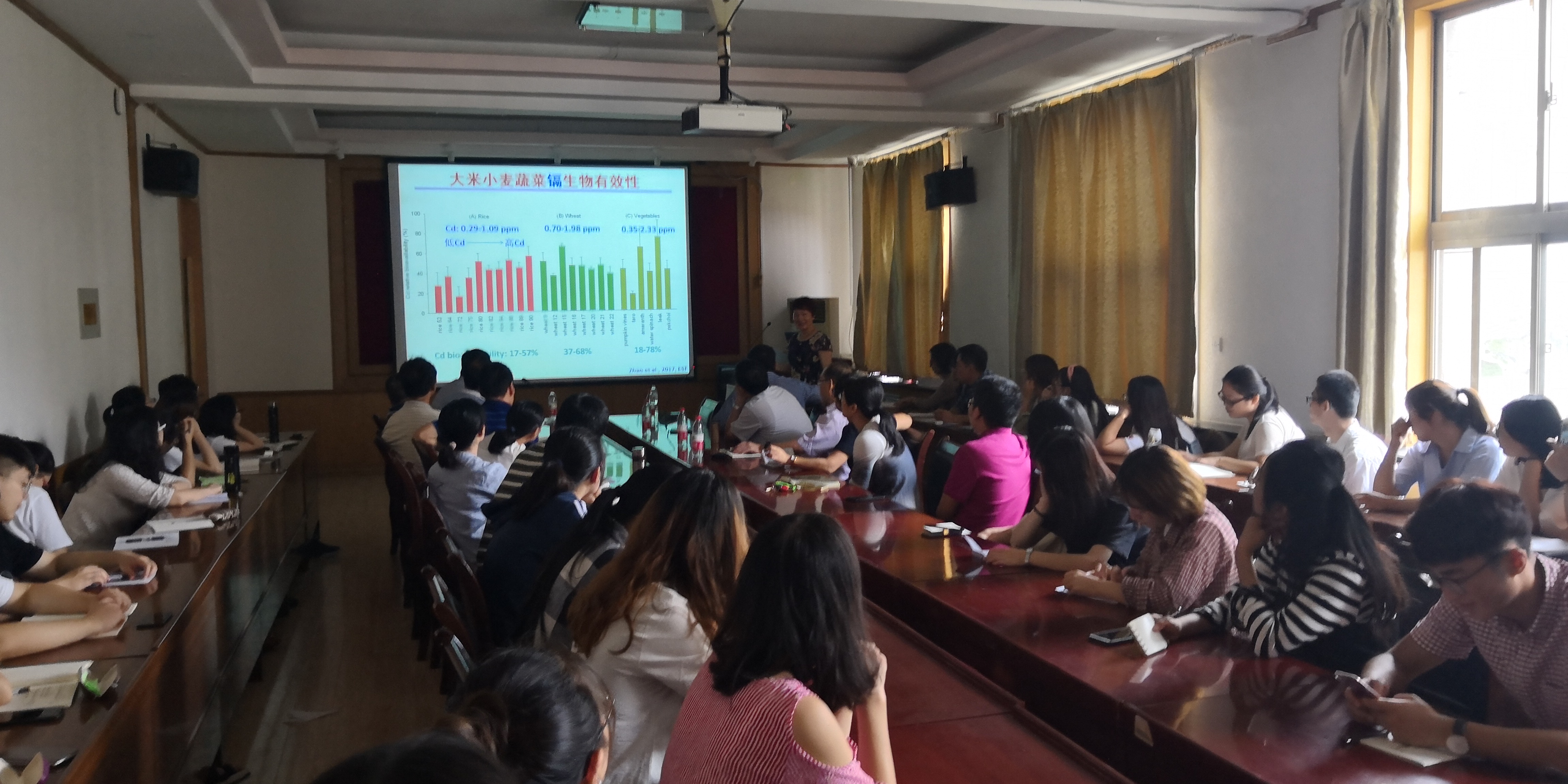 马奇英教授是美国弗罗里达大学终身教授、国家千人计划教授、国家教育部长江讲座教授、环境生态领域中排名第二的最具影响力的国际华人科学家。马教授主要从事土壤–水体–植物–微生物系统中重金属和有机污染物的生物地球化学及污染土壤、水和废弃物的植物–微生物–化学修复,并取得了较好的效果。在报告中,马奇英讲述人体生物有效性和生物可给性,介绍了生物可给性测定方法及现状,讲解了土壤中砷铅镉的生物有效性、食品中砷镉的生物有效性及在土壤修复中的应用。马奇英教授的报告引起的师生强烈的兴趣,大家纷纷提出自己的问题与进行探讨。