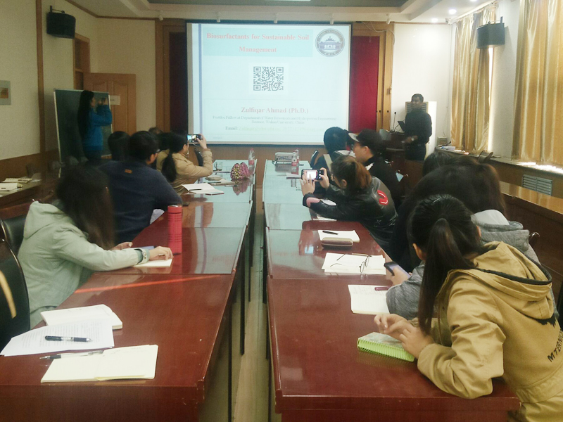 10月22日下午16:00,Dr. Zulfiqar Ahmad和Dr. Shista Andleeb在山东农业大学北校区3号楼320会议室分别作题为“Biosurafactants for sustainable soil management”和“Chromium deposition in vital organs and its detrimental impacts in Urva auropunctaus inhabiting leather tanning industrial area”的报告,相关专业的老师和研究生参加。