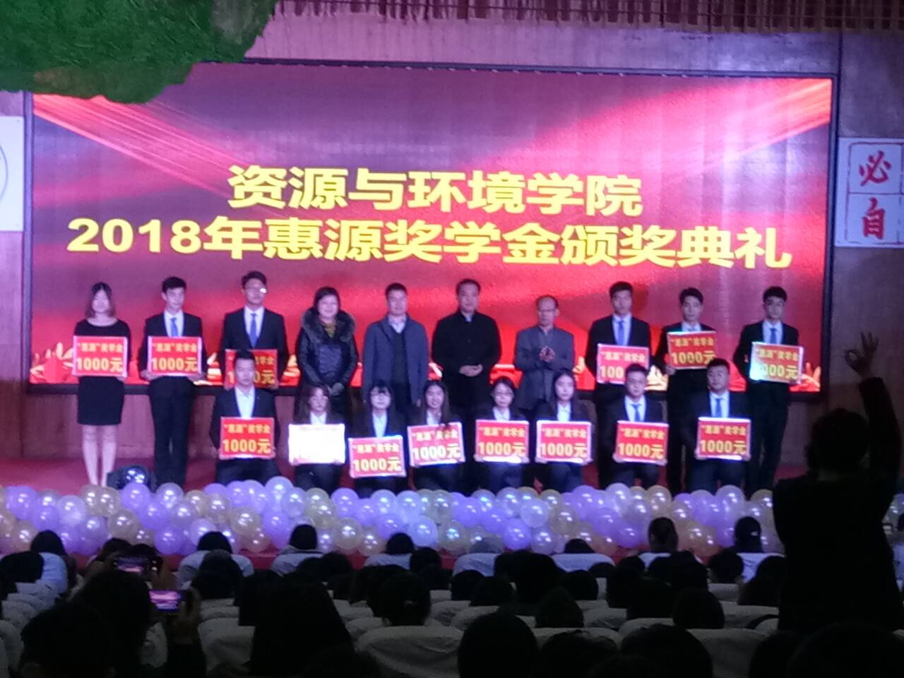 活动分为元旦晚会和惠源奖学金颁奖两部分内容。首先,在精彩的开场舞表演中拉开帷幕,开场视频中从遇见最好的你到遇见最美的校园,再到遇见奋进的新时代,层层递进,引人深思,既展现了资环学院学子们良好的精神风貌,又积极响应改革开放四十年不忘初心砥砺前行的号召;接着,现场带来的节目也是精彩纷呈。其中,小品《你的模样》、《大话西游》等将观众带入一个幽默诙谐的世界,歌曲串烧《遇见最美的你》凭借歌曲的独特风格,婉转欢快的曲调使观众沉醉其中,此外,相声、舞蹈、器乐合奏的表演更是将现场气氛一次次推向高潮。在节目间隙,学院对惠源奖学金的捐赠者冯本刚先生做了介绍、表示了感谢,并为获得惠源奖学金的优秀学子进行了现场颁奖,冯本刚先生做了发言、讲话,鼓励同学们要独立思考,认真学习专业知识,鼓励大家将学校比作练兵场,告诫同学们要吃苦耐劳,学而不厌,同时对学校和同学们做了新年祝福。