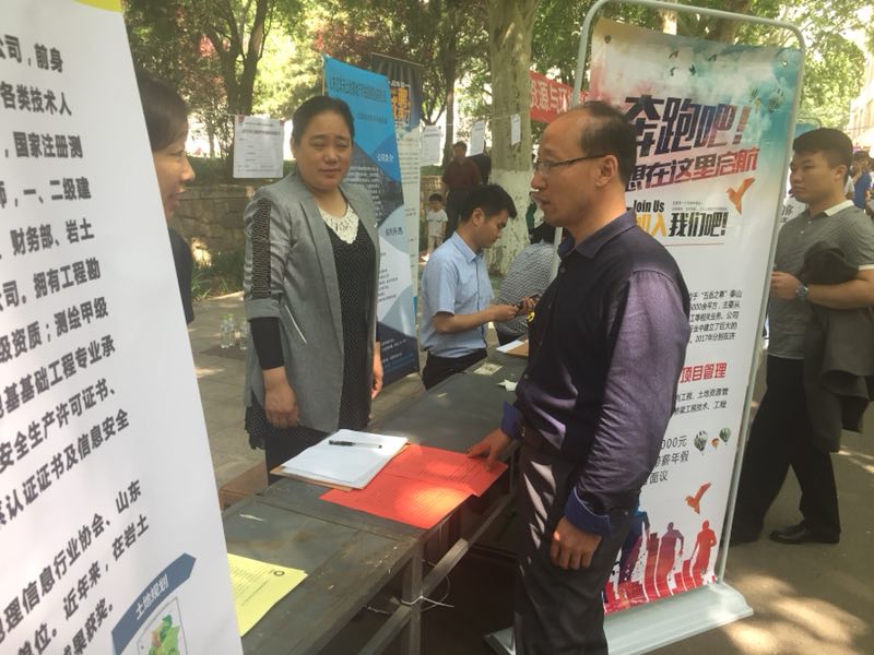 两个维度,耐心导航就业方向。学院坚持“请进来,走出去”,为毕业生“送岗位、送政策、送指导”,实现了就业服务的个性化与精准化。一是积极发挥校友优势,联系高质量用人单位到校举办专业类招聘就业市场。据悉,自2019届毕业生就业工作启动以来,结合南北校区办学实际,学院共举办专业类招聘会6次,邀请山东省地质测绘研究院、五洲丰农业科技有限公司、北京得力合环境治理有限公司等用人单位154家,累计提供就业岗位2000余个。