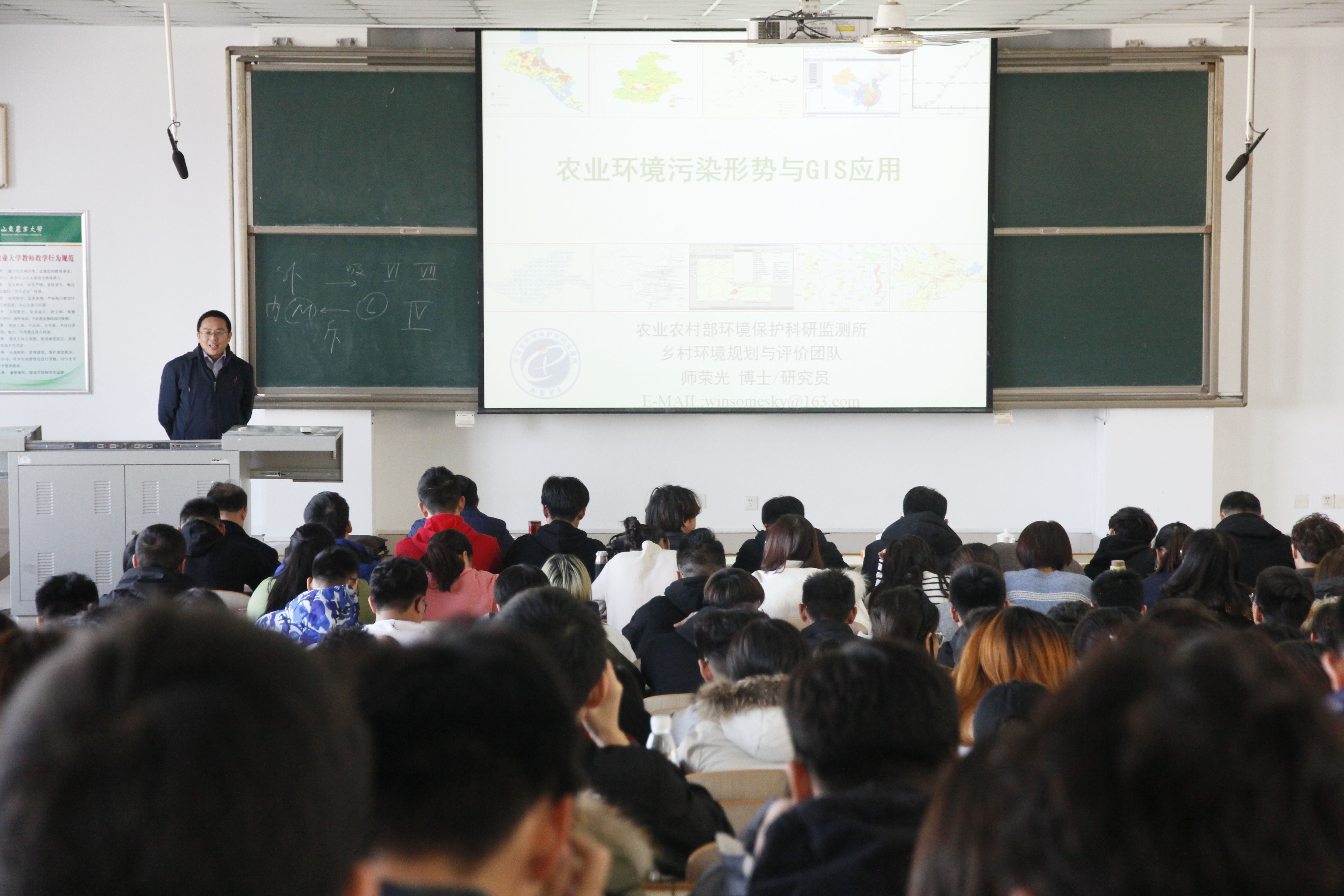 据悉,师荣光和赵玉杰博士分别对GIS、DGT有着多年的研究经历,是该领域内的前沿研究者和排头兵。此次报告会的举办,搭建起学生与优秀科研工作者交流的平台,使学生了解我国当前农业环境形势与问题,明确当代大学生的历史使命与担当,同时也为鼓励学生积极投身科研,成长为“知农爱农”、“强农兴农”的新型人才起着推动作用。