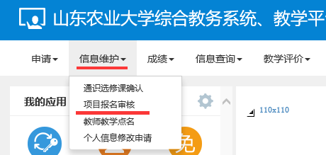 登录教师账号,点击信息维护—项目报名审核菜单。