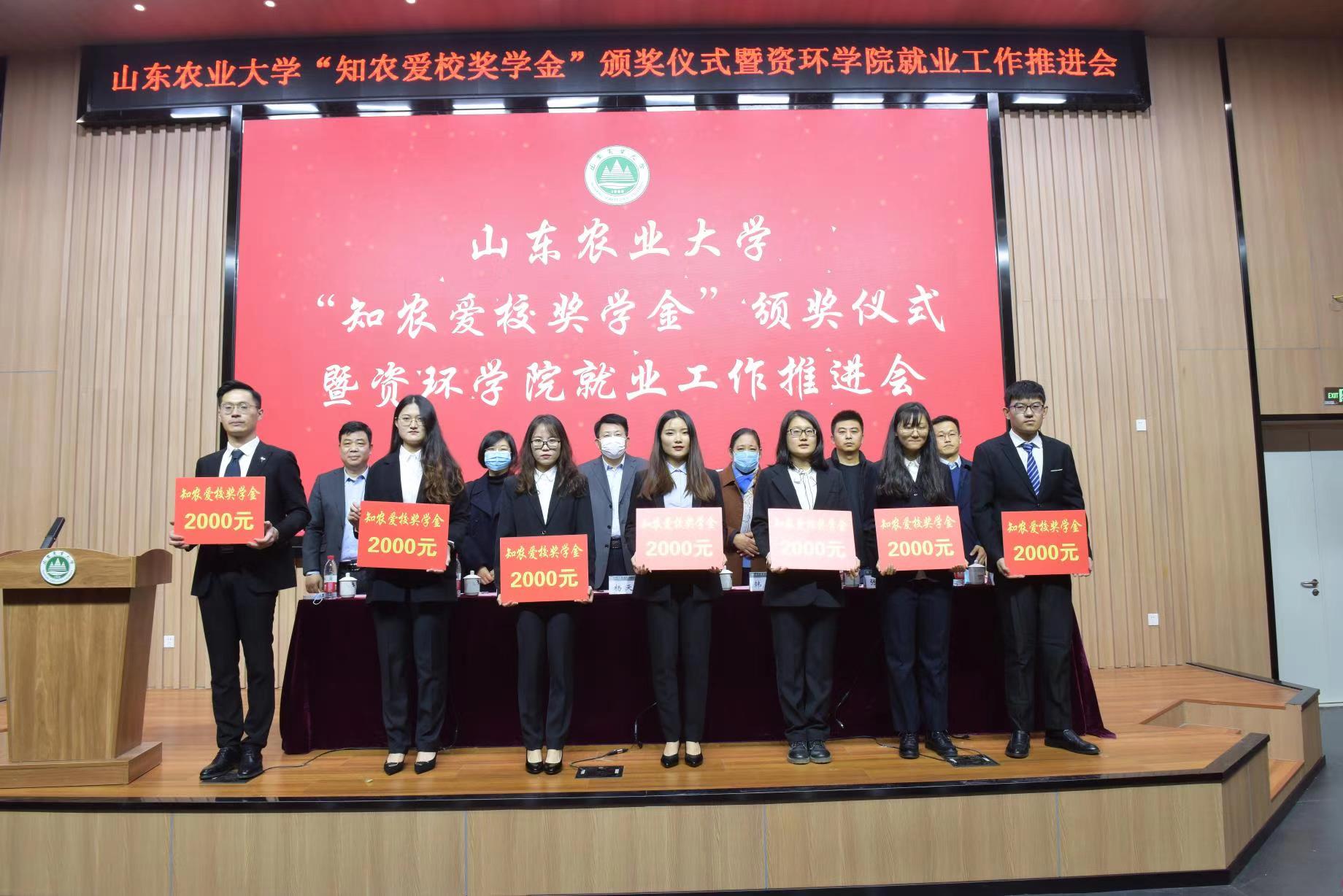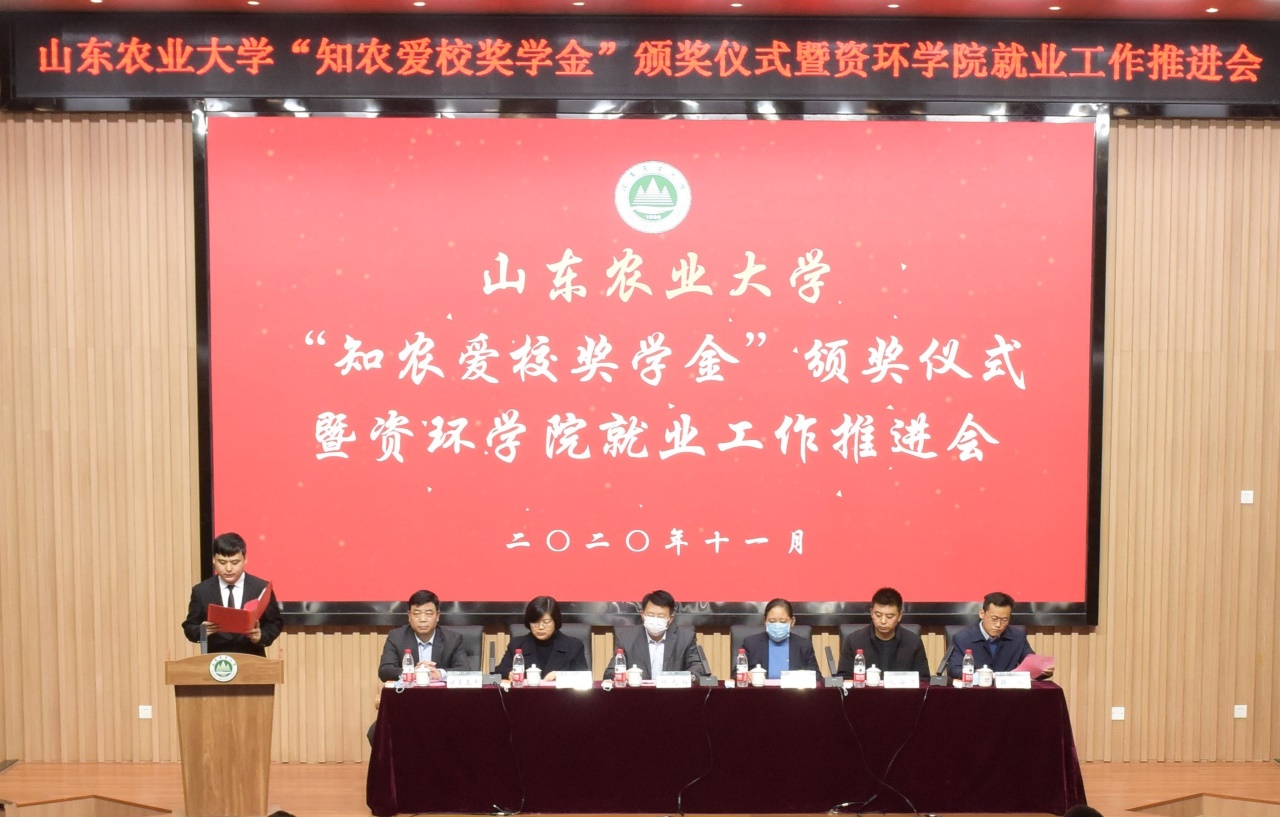 为进一步增强学院毕业生深造率和就业率,提高全院教职工就业工作积极性,资环学院于11月26日在山东农业大学西北校区举行山东农业大学“知农爱校奖学金”颁奖仪式暨资环学院就业工作推进会,表彰全面发展、积极就业的2020届毕业生和优秀就业指导教师。本次会议由山东农业大学党委副书记杨天梅、团委书记孙丽、学工处副处长张安涛、山东明瑞土地工程技术有限公司人力资源部经理韩昭敏、资环学院院长诸葛玉平、党委副书记薛松等出席,资环学院学生代表参加。