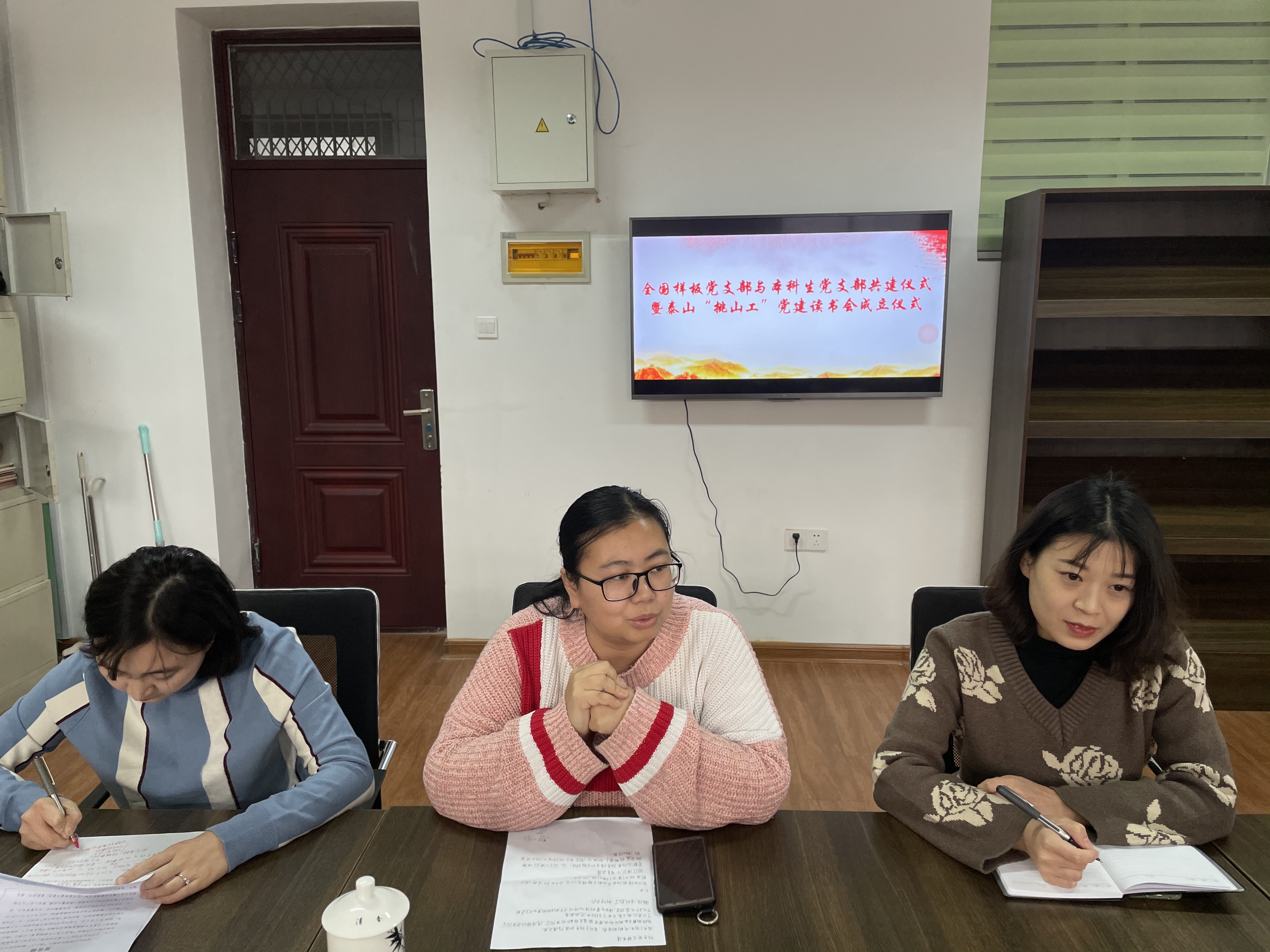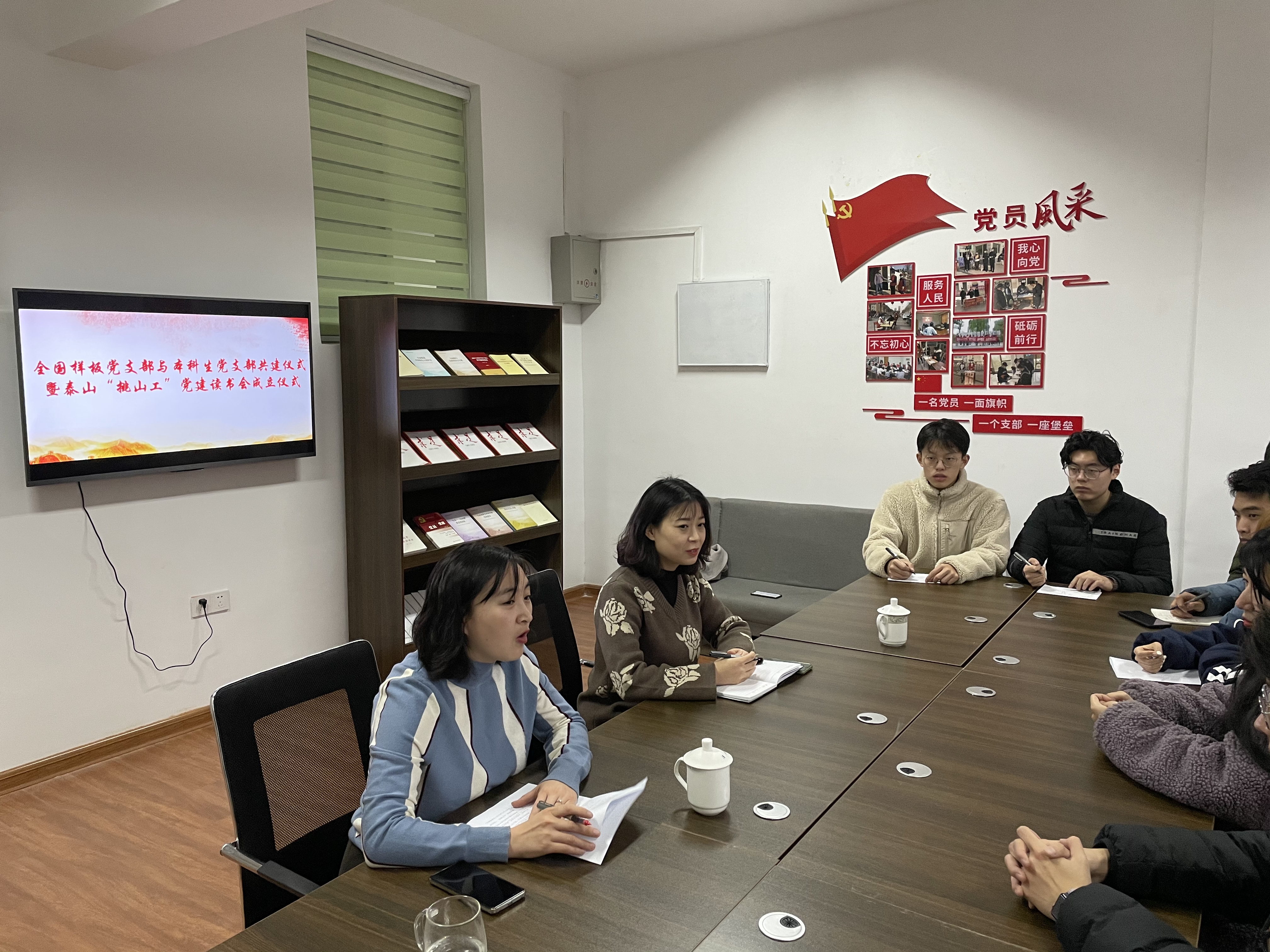 为传承弘扬“挑山工”精神,推动基层党建工作高质量发展,12月5日下午,资环学院全国样板党支部与本科生党支部共建仪式暨泰山“挑山工”党建读书会成立仪式在大学生党员活动室举行。样板支部书记申天琳、学生第一党支部书记刘真真、第二党支部书记刘然出席仪式,学生党员参加会议。