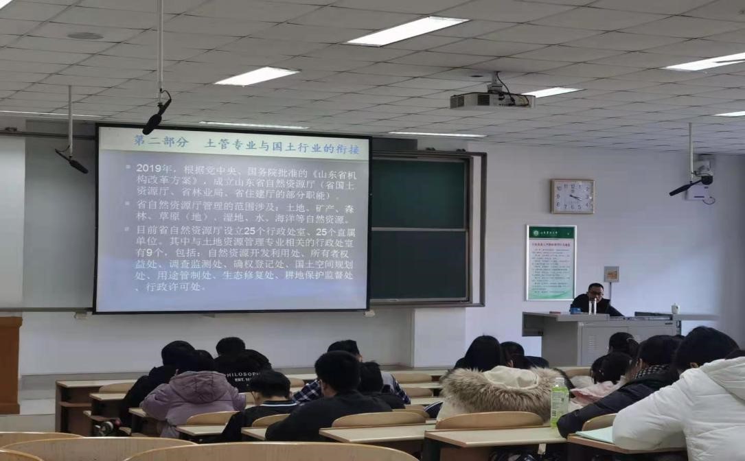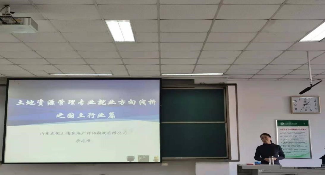 为促使学生确定就业方向,明晰目前就业形势,加深对国土行业的了解,12月14日下午,资环学院于南校区综合楼N103邀请山东正衡土地房地产评估勘测有限公司李忠峰副总经理作土地资源管理专业就业方向报告会,土管专业主任王瑷玲教授、辅导员刘天琳及土管专业毕业生参加这次报告会。