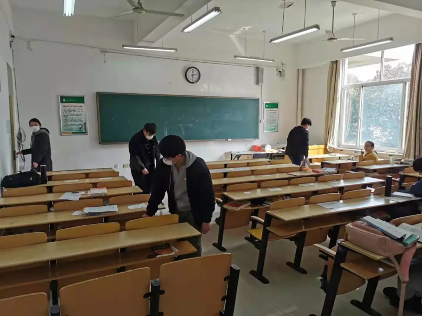 活动伊始,党员们应疫情防控要求做好相关防护措施,准备好各项清理工具,分组前往不同教室。期间,各党员充分发挥团队协作与奉献精神,安静高效地对教学楼地面、课桌以及讲台遗留垃圾进行彻底清扫。经过三个小时的清理,教学楼焕然一新,清理任务圆满结束。