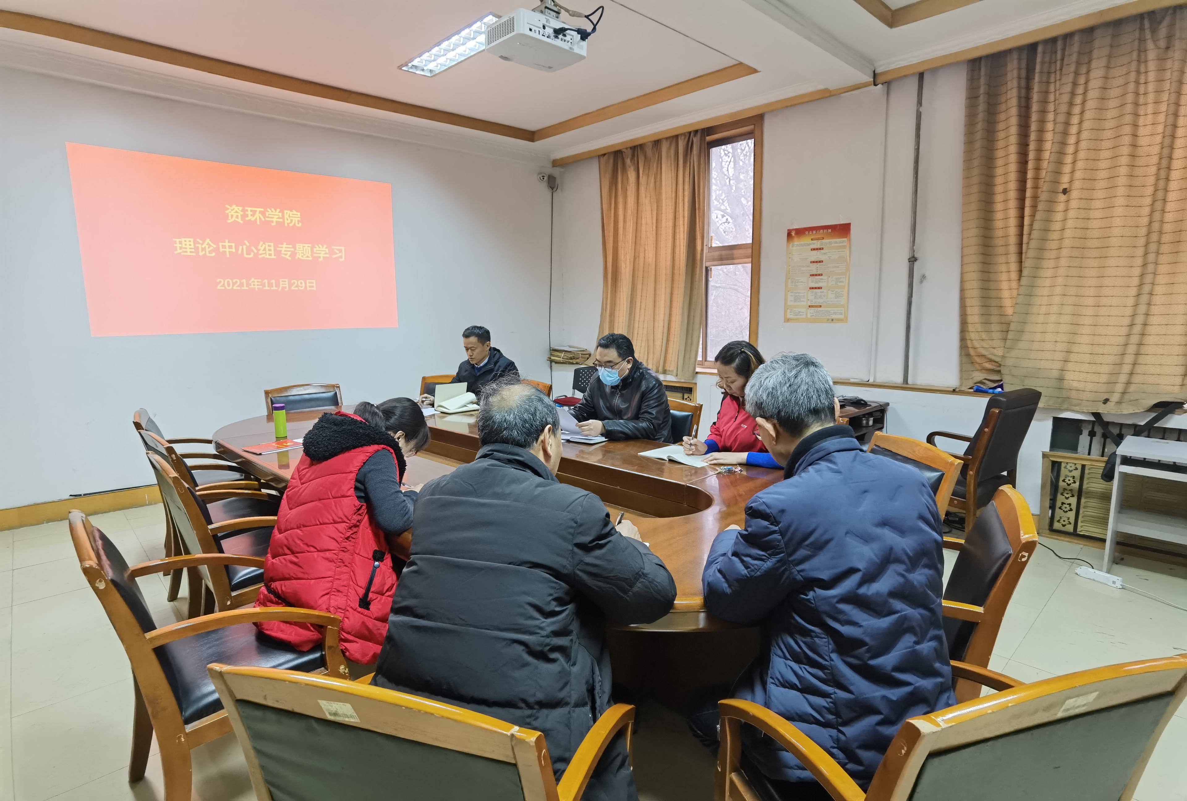 11月29日,资源与环境学院在学院会议室召开党委中心组2021年第十八次学习会议。党委书记冯国营主持会议,学院党政领导班子、党委委员参加会议。