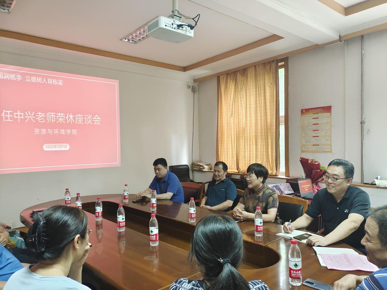 7月1日,在中国共产党成立101周年之际,资环学院为任中兴老师举行荣休仪式,校工会主席王娟、资环学院领导班子和学院教师代表参加。