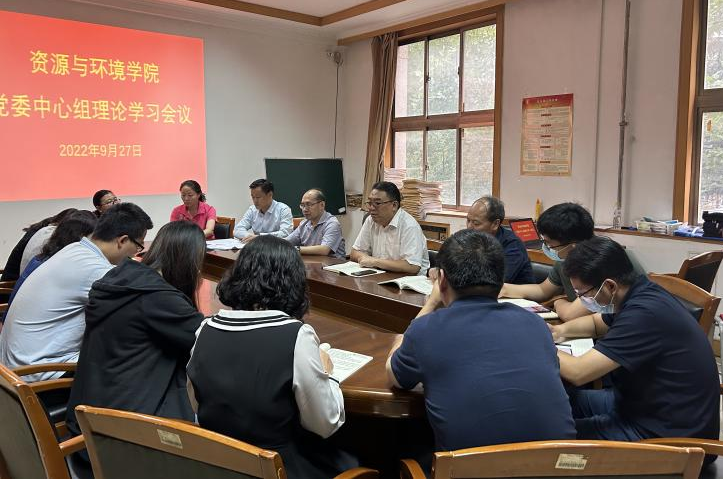 2022年9月27日,资源与环境学院党委在学院会议室召开中心组第二十九次学习会议。党委书记冯国营主持会议,学院党政领导班子、党委委员参加会议,各支部书记列席会议。