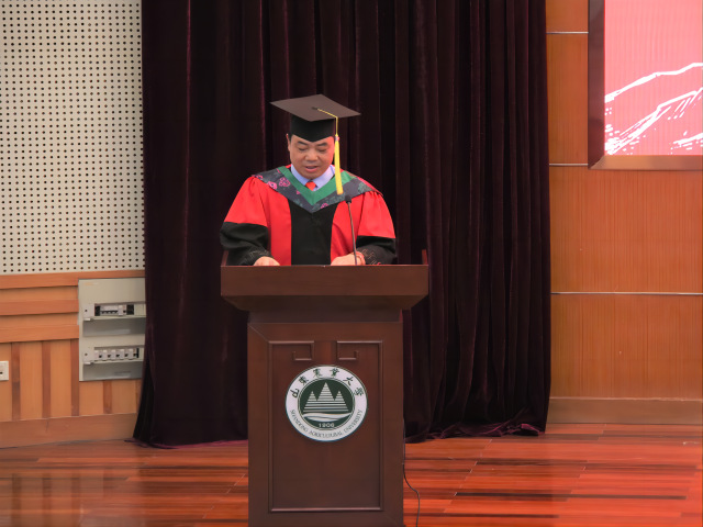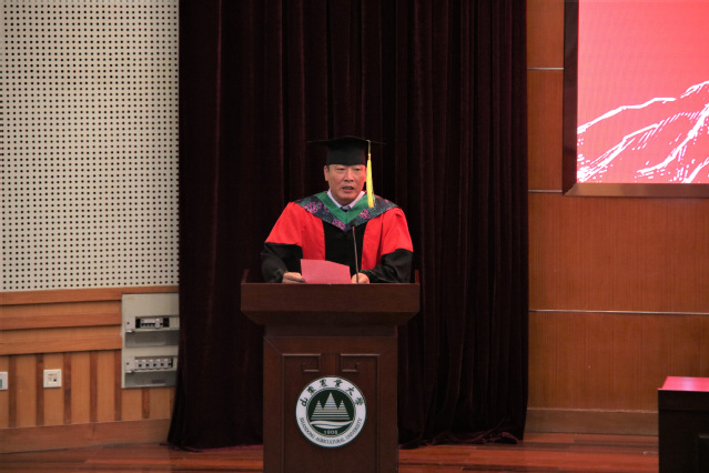 毕业典礼在庄严的国歌声中拉开了帷幕。2022级硕士研究生范志睿同学作为在校生代表为毕业生送上了最衷心的感谢和最诚挚的祝福,希望师兄师姐在新起点上再创辉煌,成为山农资环永远的骄傲。优秀毕业生代表李伟同学深情回顾了自己在母校数年的科研生活,真切表达了对母校的眷恋之情和对导师的感恩之心,并表示将不辜负母校的期盼和嘱托,在新岗位上再创佳绩;教师代表“国家百千万人才”、享受国务院特殊津贴专家张民教授结合自己的个人成长、求学经历,分享了成为一名科研大家的必由之路,同时对毕业生提出殷切期望。院长诸葛玉平代表学院向2023届毕业研究生表示最热烈的祝贺,他为毕业生在校期间取得的累累硕果点赞,并提出了三点希望:一是希望同学们要根植肥沃土壤,努力向下扎根,二是希望同学们要充分汲取营养,提升学习能力,三是希望同学们要不断向上成长,实现人生理想。