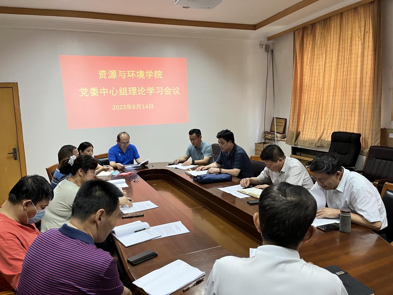 2023年6月14日,资源与环境学院党委在学院217会议室召开中心组第三十六次学习会议,围绕学习贯彻习近平新时代中国特色社会主义思想主题教育第三专题开展学习研讨。党委书记郑峰主持会议,学院党政领导班子、党委委员、各支部书记参加会议。