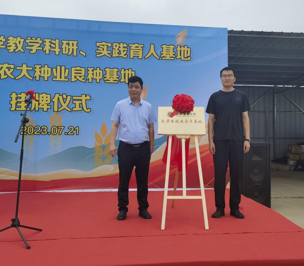 7月21日,山东农业大学教学科研实践育人基地、山东农大种业良种基地签约挂牌仪式在济宁任城区济宁地和农业科技发展有限公司举行,学院院长诸葛玉平、学院党委书记郑峰出席此次活动。