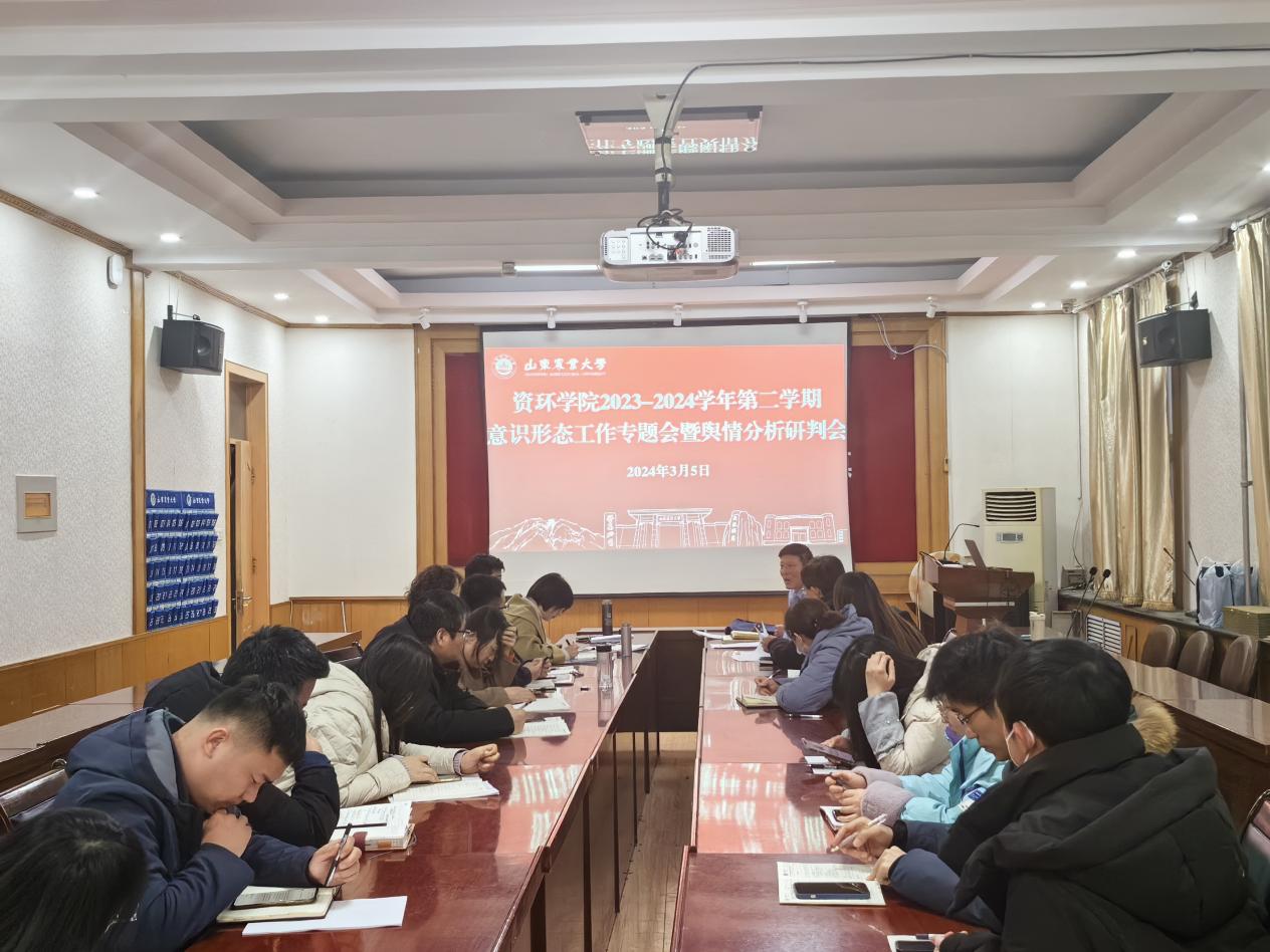 3月5日下午,资环学院召开意识形态工作专题研讨会暨舆情分析研判会,深入学习贯彻习近平新时代中国特色社会主义思想,全面贯彻落实学校意识形态工作会议要求,扎实做好新时代意识形态工作。党委书记郑峰主持会议,学院党政领导班子成员、党委委员、支部书记、全体专兼职辅导员参加会议。